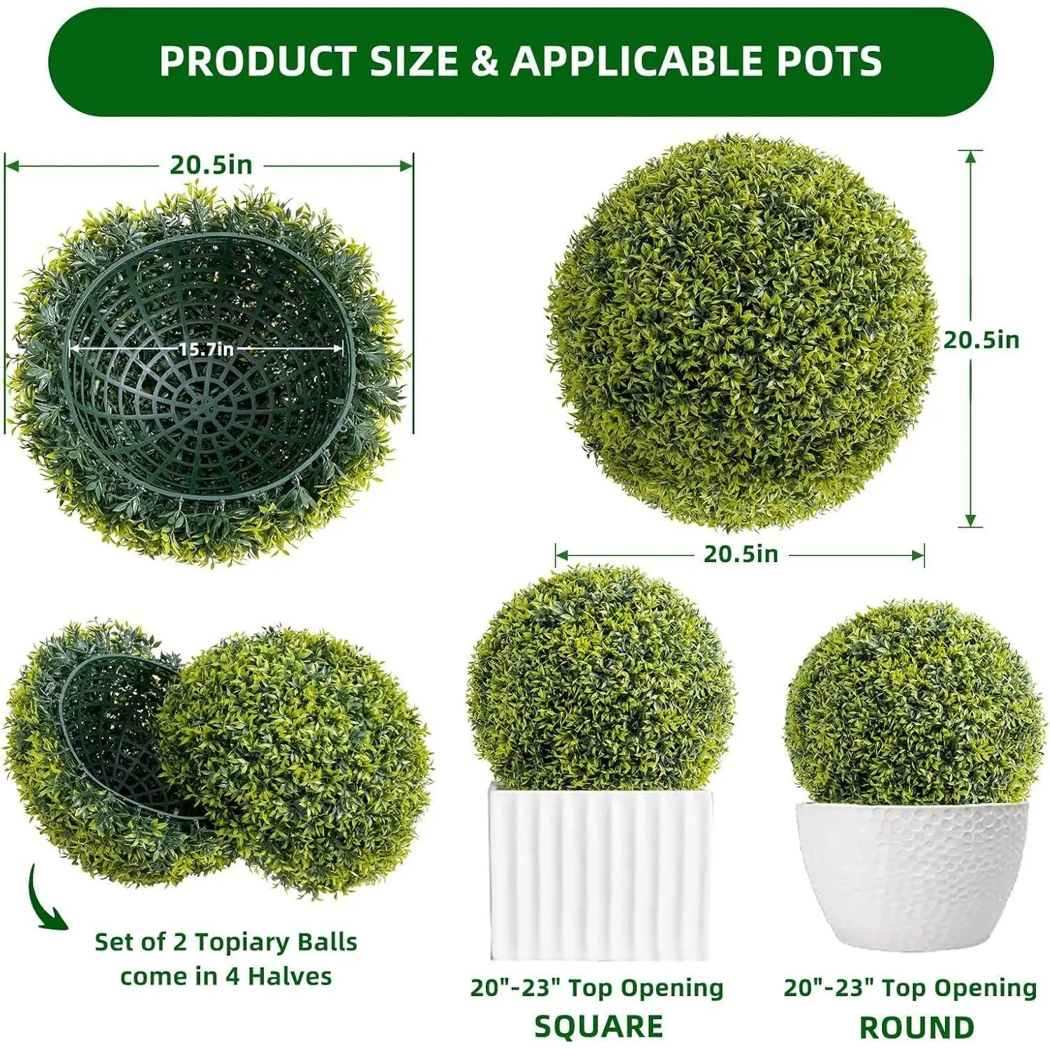 All Weather Durability-Made of highdensity PE material and UVresistant coating these faux topiaries withstand rain wind and sunlight without fading ideal for outdoor decoration in harsh climates or indoor home office spaces
