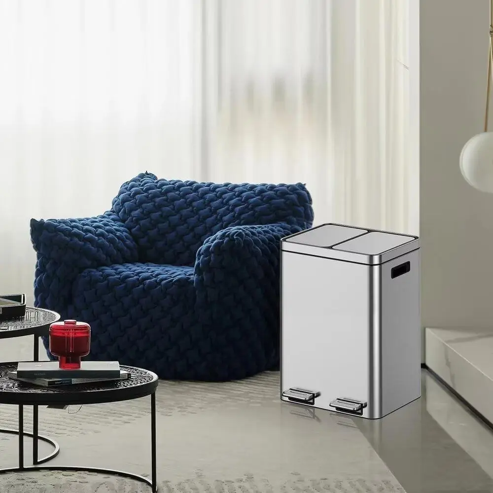 Crafted with fingerprint-resistant stainless steel, this modern 2-compartment trash can combines sleek metallic luster with a square silhouette, Blends seamlessly into kitchen decor while resisting stains and odors.