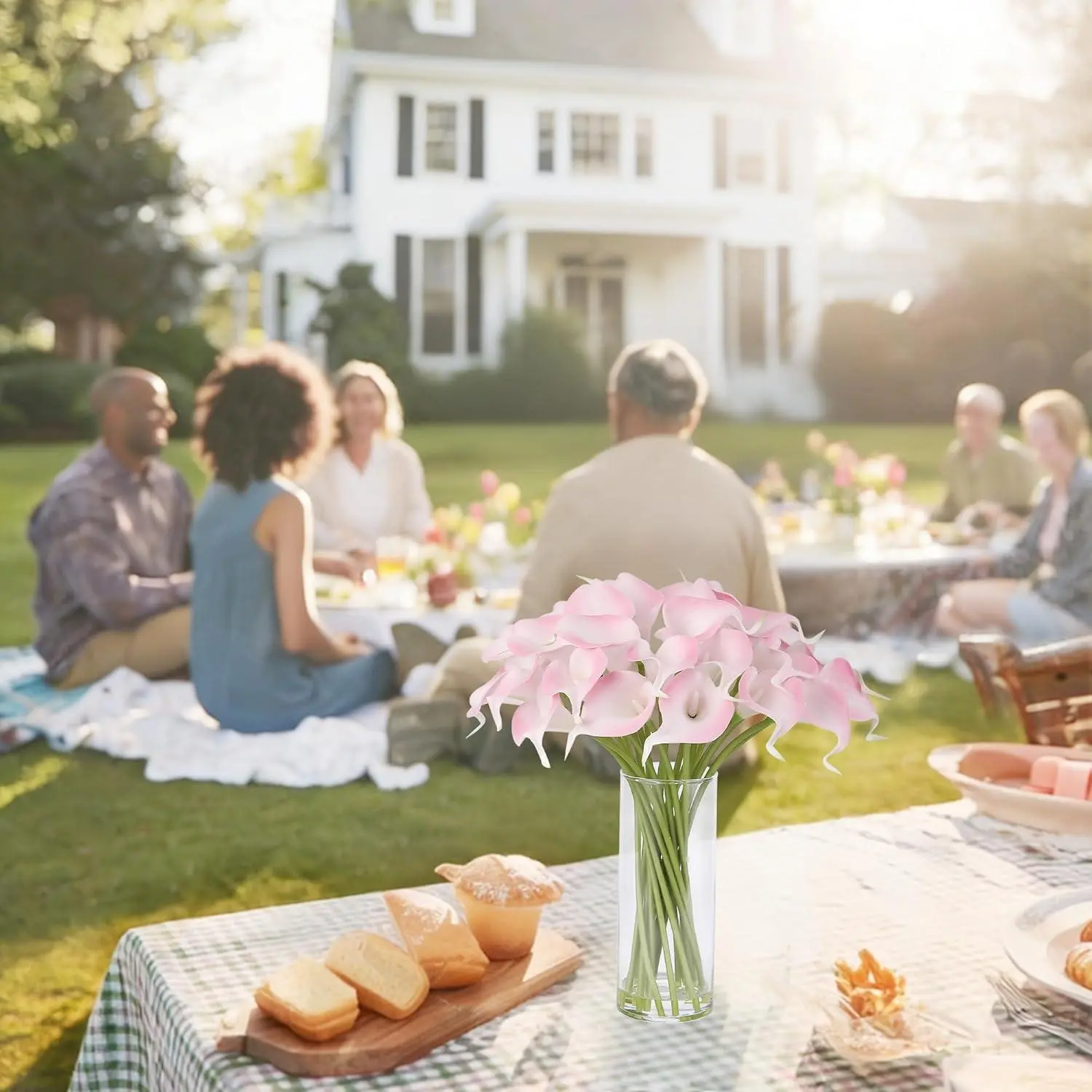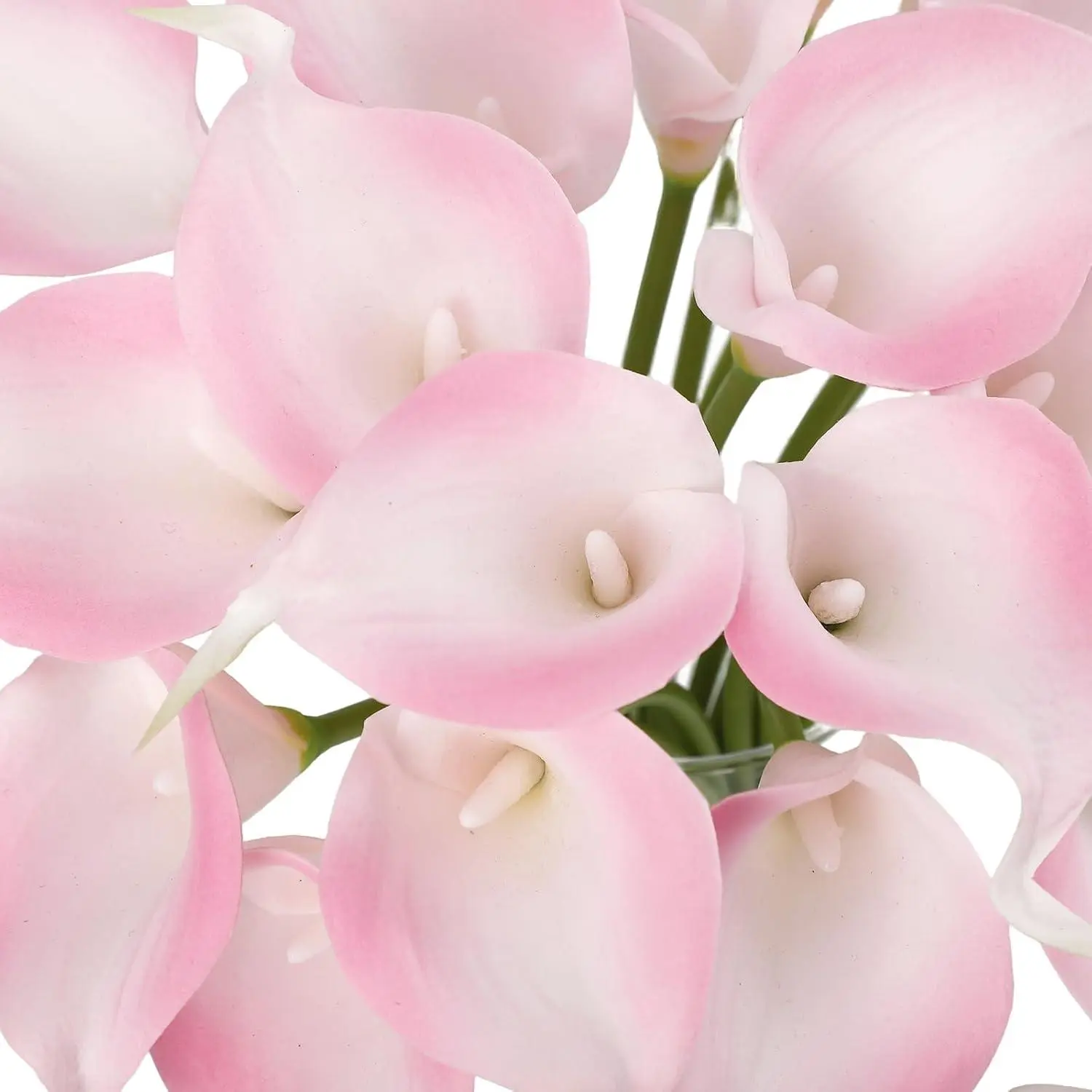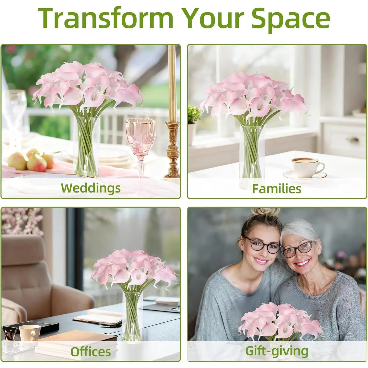 🌸 PERFECTLY CRAFTED WITH REALISTIC DETAILS: Our artificial calla lilies feature hyper-realistic latex petals that mimic the delicate veins and silky texture of fresh flowers. Each of the 24 stems is carefully designed with lifelike curves and natural color gradients, arranged in a classic glass vase filled with crystal-clear faux water to create an ever-fresh, dew-kissed look that never fades or wilts. Available in three elegant colors: vibrant Yellow, pure White, and soft Pink.