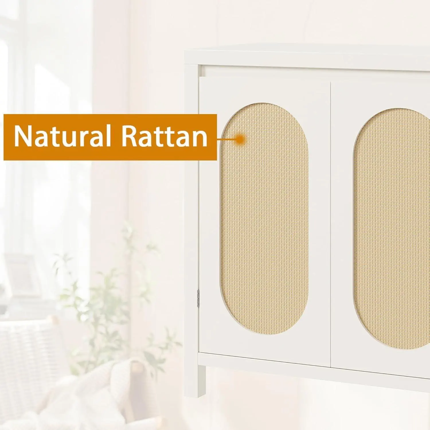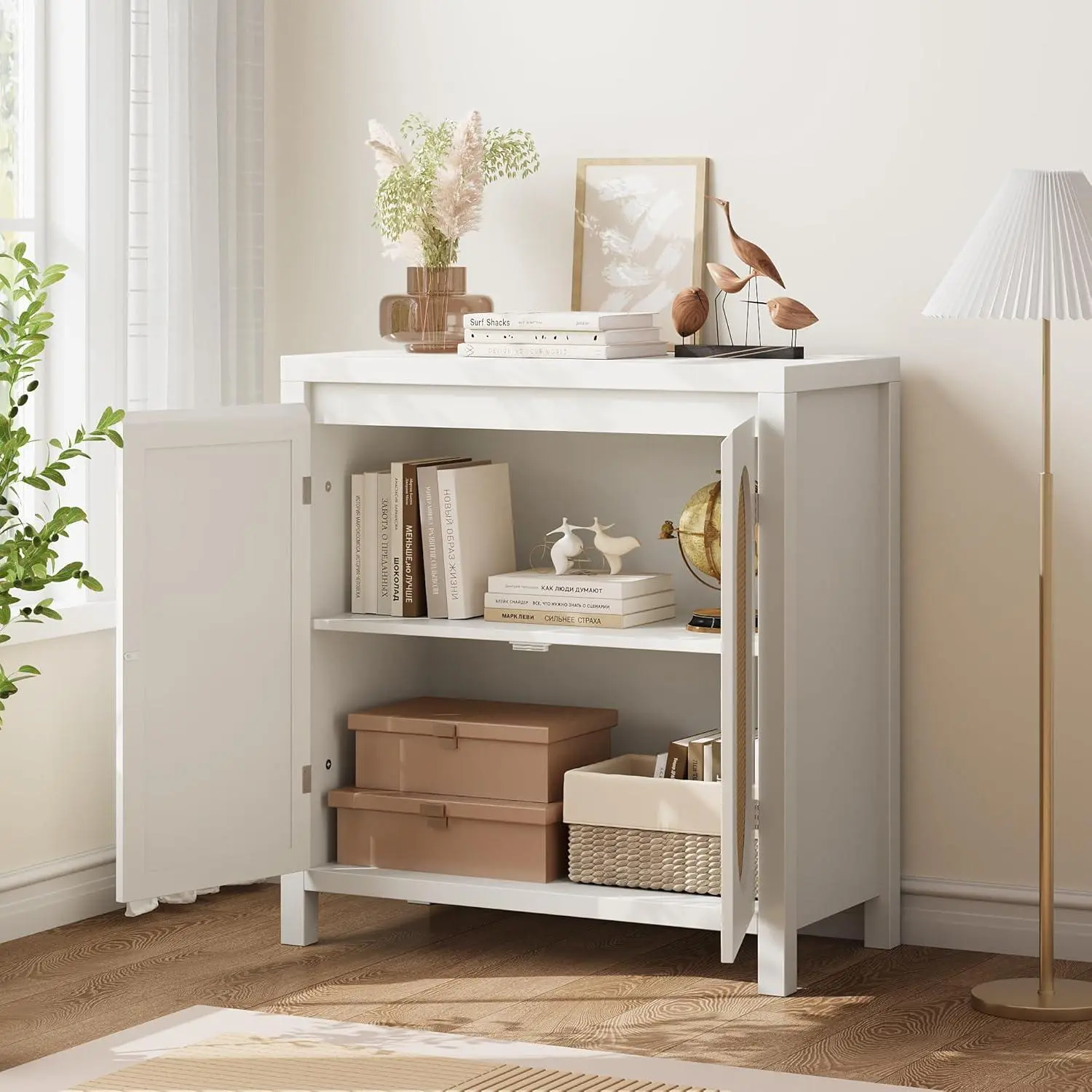 5. White Qeetex 31 Inch Small Sideboard Buffet Cabinet with Glass Doors Adjustable Shelf and Black Finish White