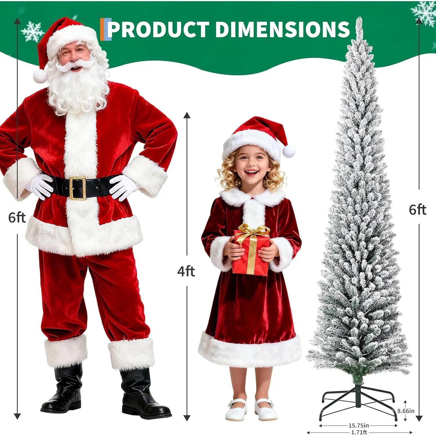 ·Perfect for Home or Business: Whether you’re decorating your living room or a retail space, this snow Christmas tree adds a stunning wintry touch. Its elegant flocked pencil Christmas tree design enhances festive décor while attracting admiring glances from family or customers alike!