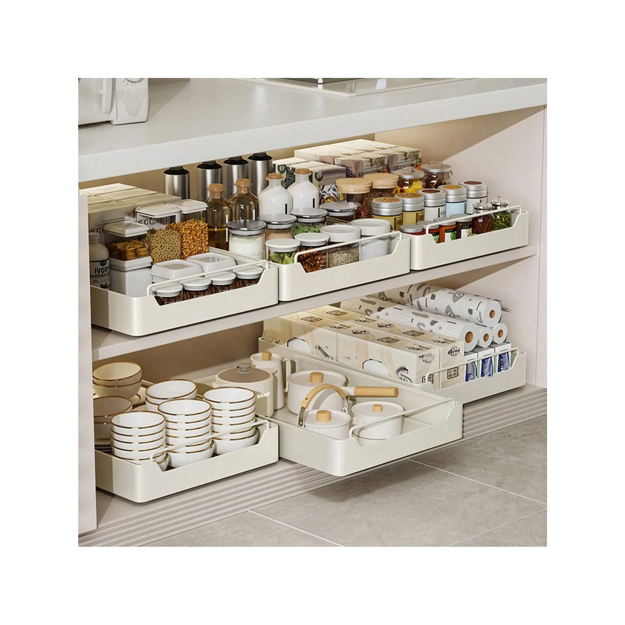 Easy Installation- Simple design and straightforward installation instructions ensure quick setup In just a few steps you will have a complete pull-out cabinet storage box ideal for kitchen bathroom under-sink storage and pantry organization
