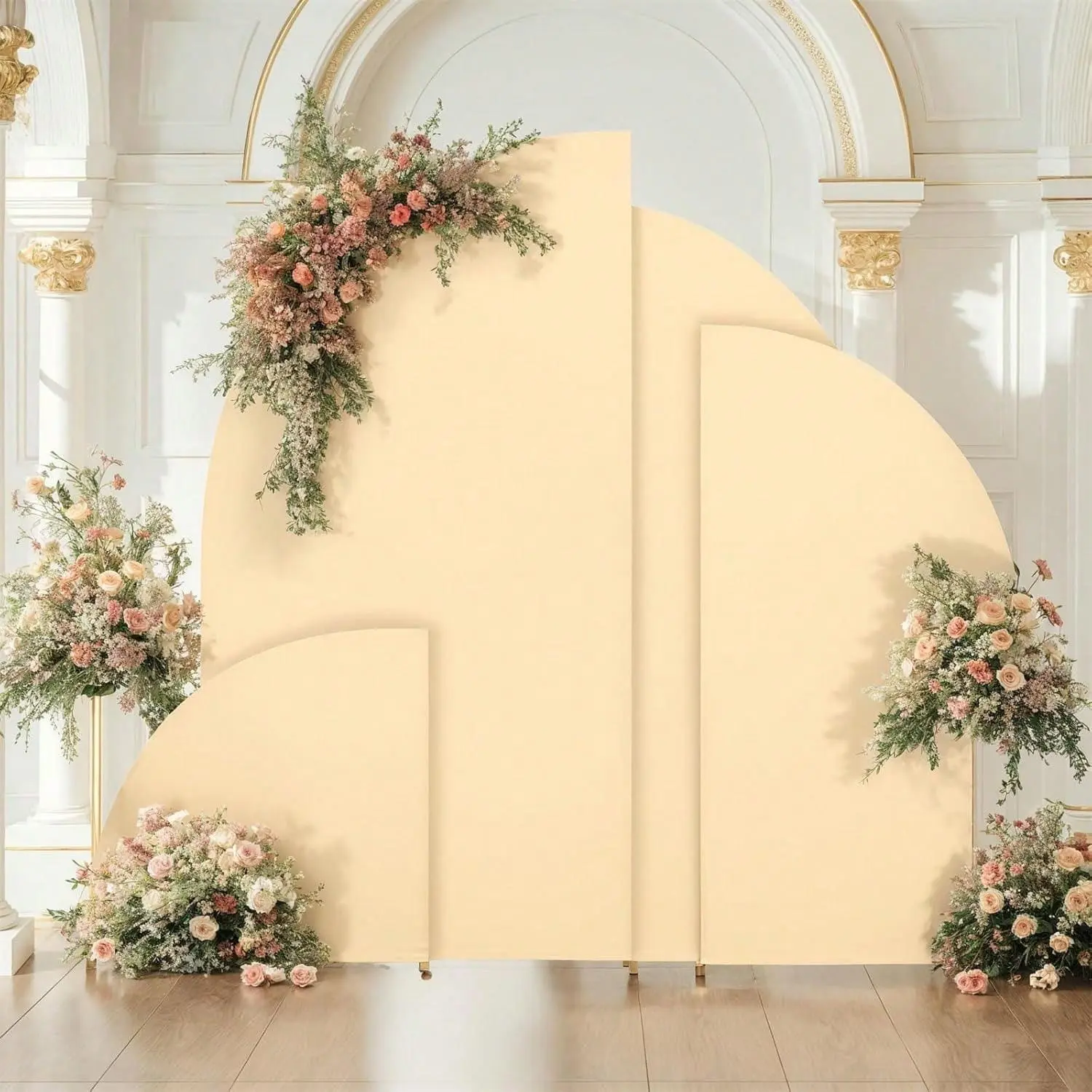 DOUBLE SIDED COVERING: Wedding half moon arch backdrop cover adopt double-sided design which perfectly showcases the backdrop decorations on both sides.Providing a pure and charming look for either direction,half moon arch backdrop cover is a perfect decorations for the party & wedding.