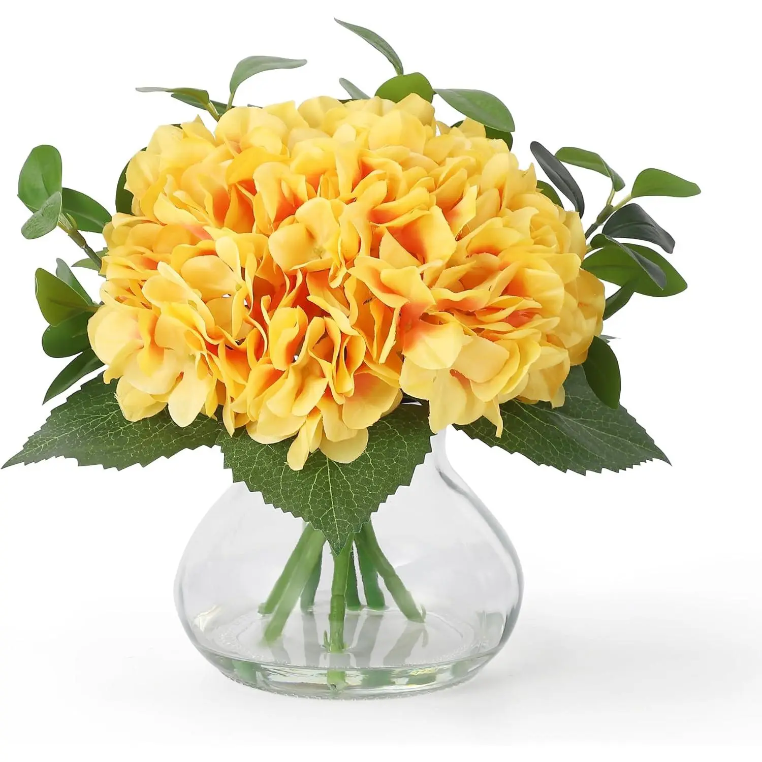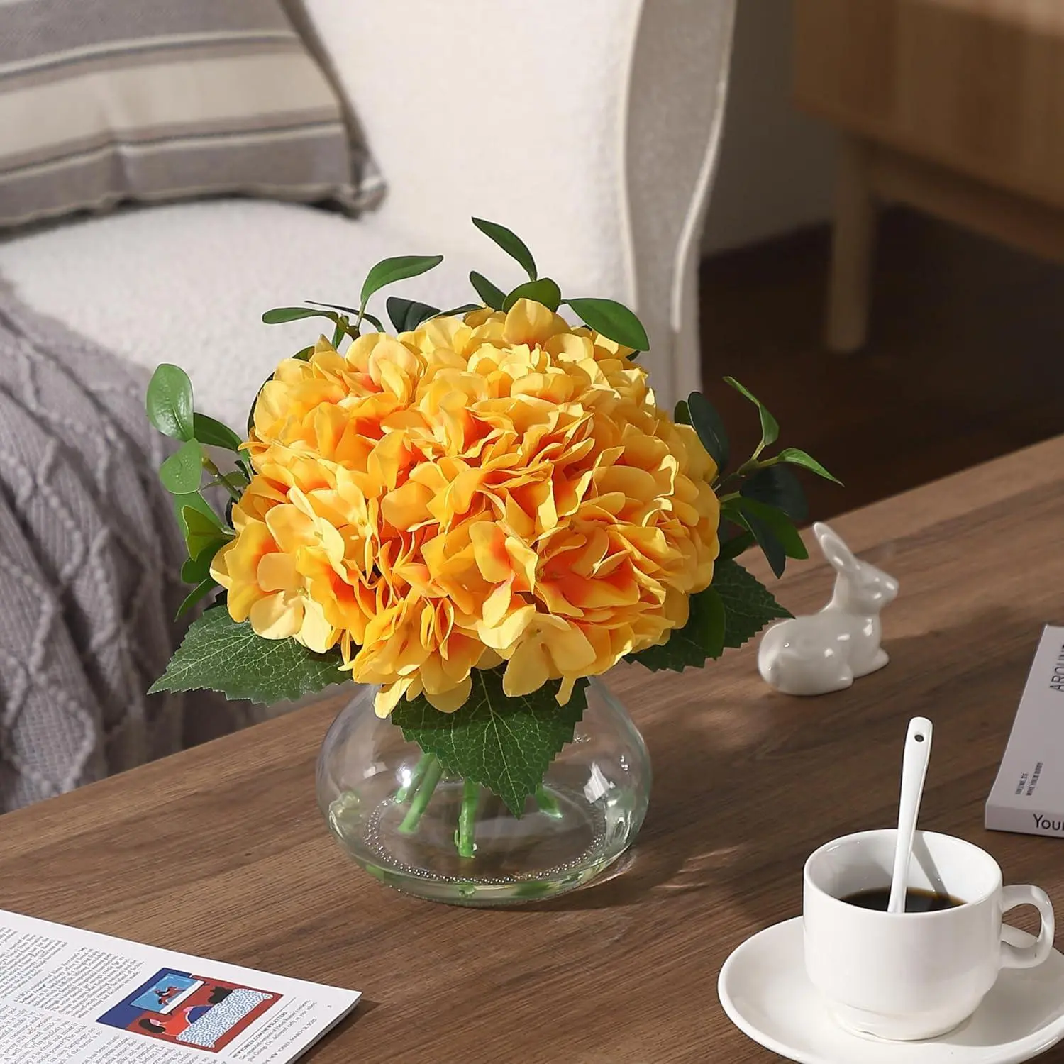 Romantic Life Partner: This set of 7 artificial hydrangea flowers with glass vase boasts rich colors and delicate silk petals crafted to mimic natural blooms, bringing romantic elegance and a fresh, luxurious touch to your home décor
