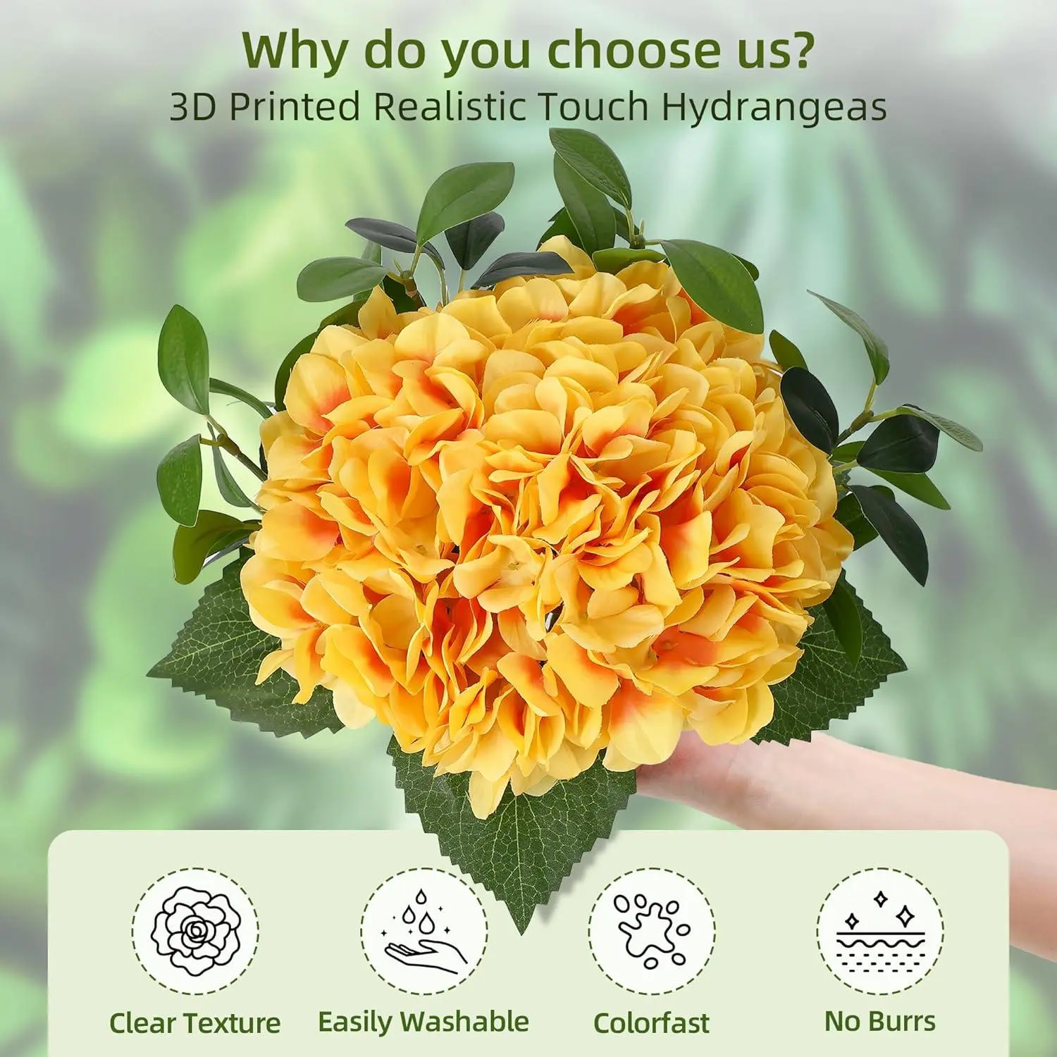 Premium Silk Material: Made from fade-resistant silk, these fake hydrangea flowers feature 3D printed petals with vivid texture and clear details. They remain vibrant and soft to the touch, providing long-lasting beauty without wilting