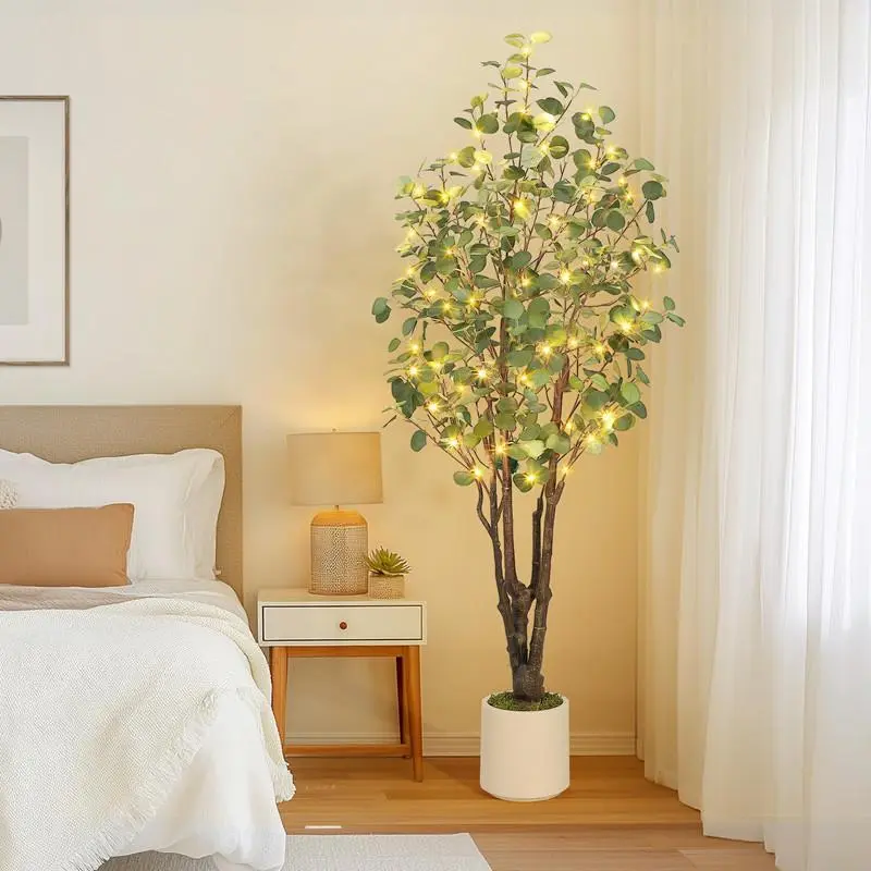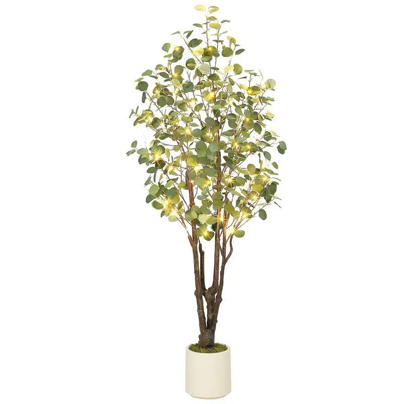 Realistic Artificial Eucalyptus Tree with White Planter, Large Faux Floor Plant with Lights, Ideal for Home Office & Living Room Decor 6FT(with lights) Decorative Fruit Fairy Ornaments