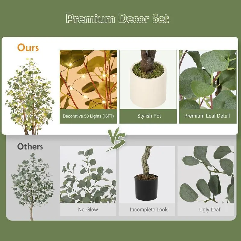 Perfect for Holiday and Event Decor:Illuminate your space with this stunning artificial Eucalyptus tree featuring LED fairy lights. Perfect for adding a magical touch to holidays like Easter, Christmas, weddings, birthdays, or Mother’s Day.