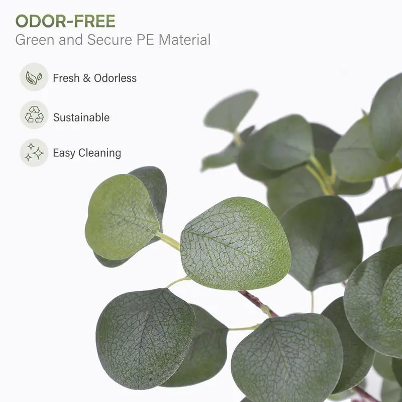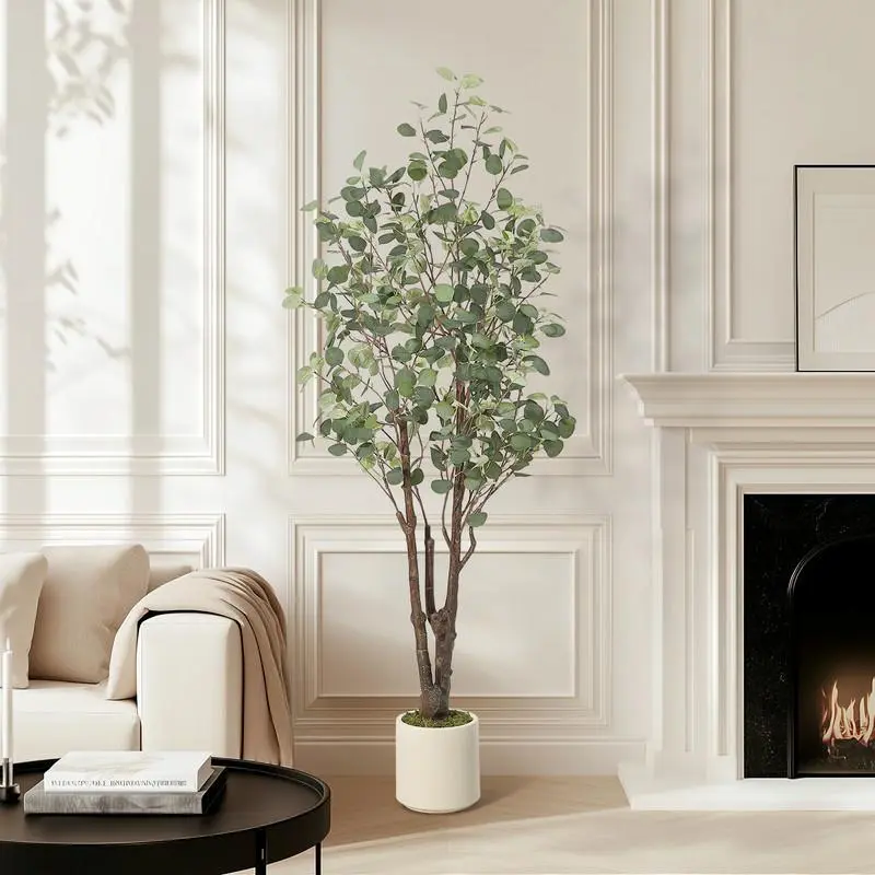 Ideal for Home or Office Decor:Create a serene and elegant atmosphere in your living room, home office, or any indoor space with this realistic faux Eucalyptus tree. Its large size and white planter make it a striking centerpiece.
