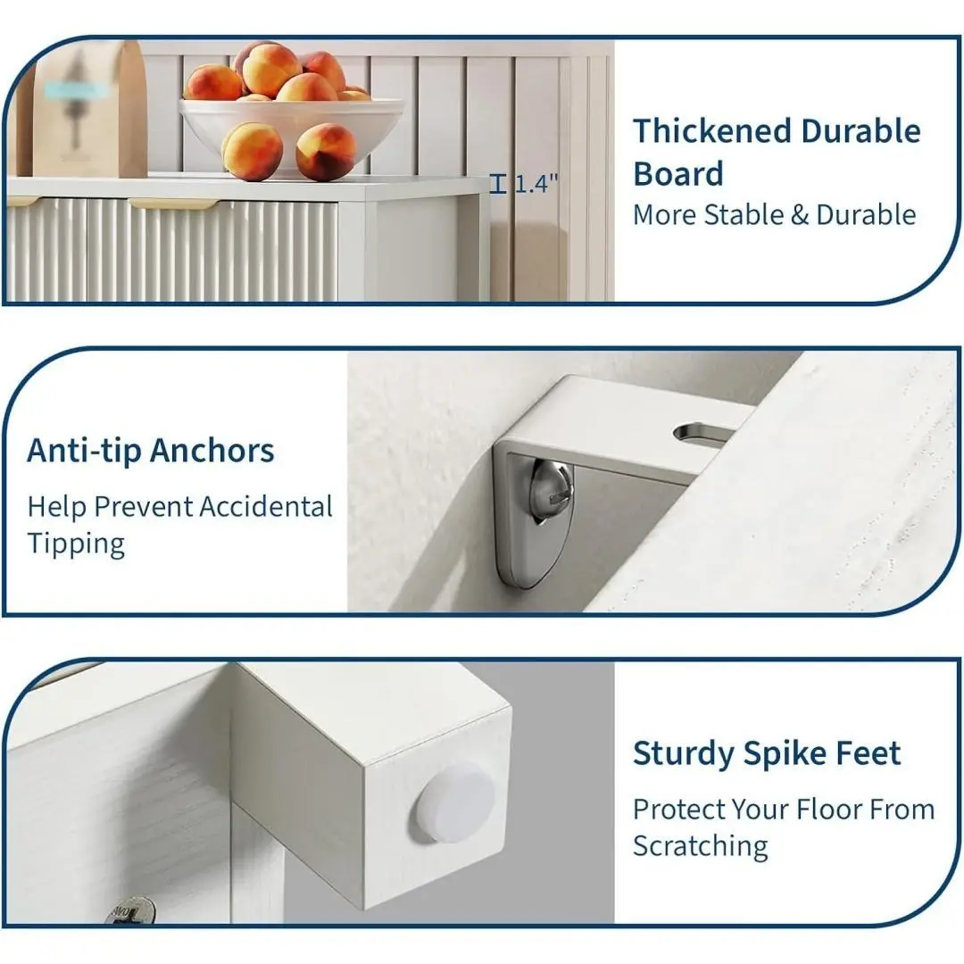 Easy Assembly and Reliable Support-All parts hardware and clear instructions are included for quick assembly of your sideboard cabinet