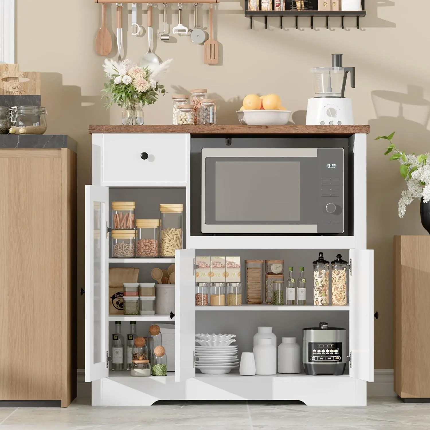 Kitchen Microwave Cabinet with Storage Buffet Sideboard  for Kitchen Dining, Living Room Hallway