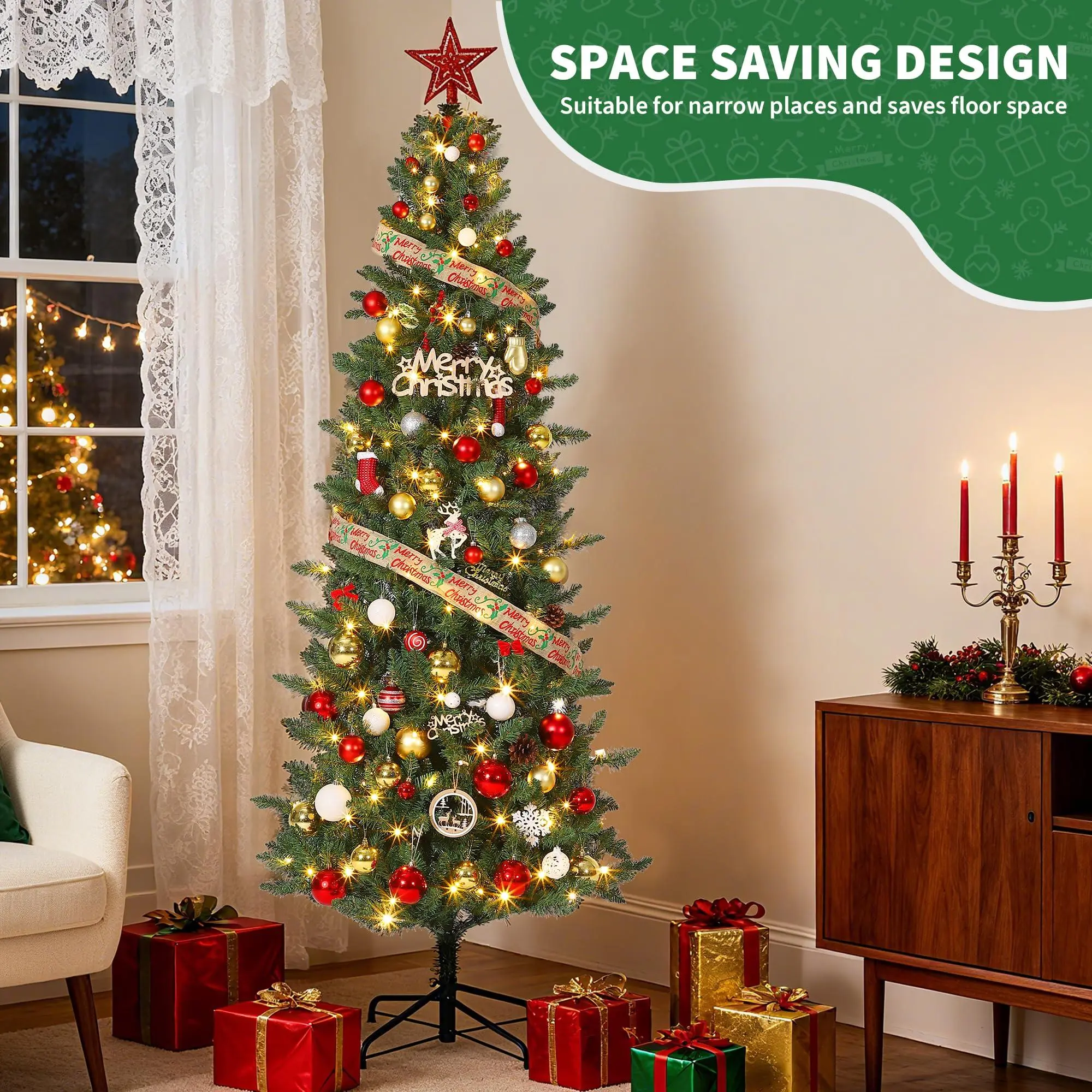 【Slim & Space-Saving Perfect for Small Areas】 Ideal for apartments, offices, or cozy corners, this skinny Christmas tree with lights brings full holiday charm without taking over your space. Its slender profile fits neatly anywhere while offering plenty of room for ornaments—making it the perfect small Christmas tree with lights for stylish, compact decorating.