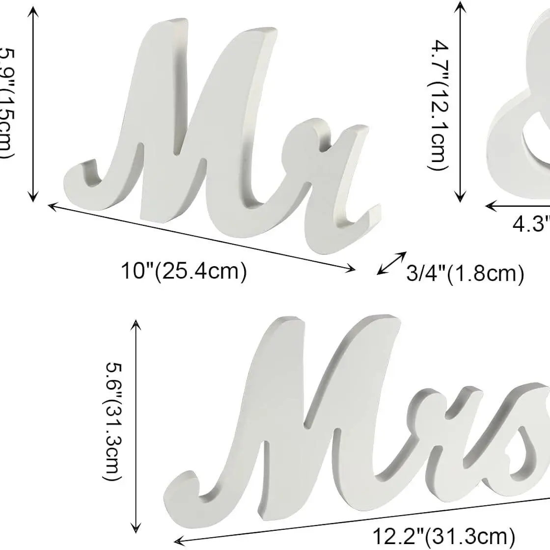 【Perfect Size】"Mr" size: 10 x 5.9x 3/4 inch, "Mrs" size: 12.2 x 5.9 x 3/4 inch, "&" size: 4.3 x 4.7 x 3/4 inch, create an elegance and romantic atmosphere while using.