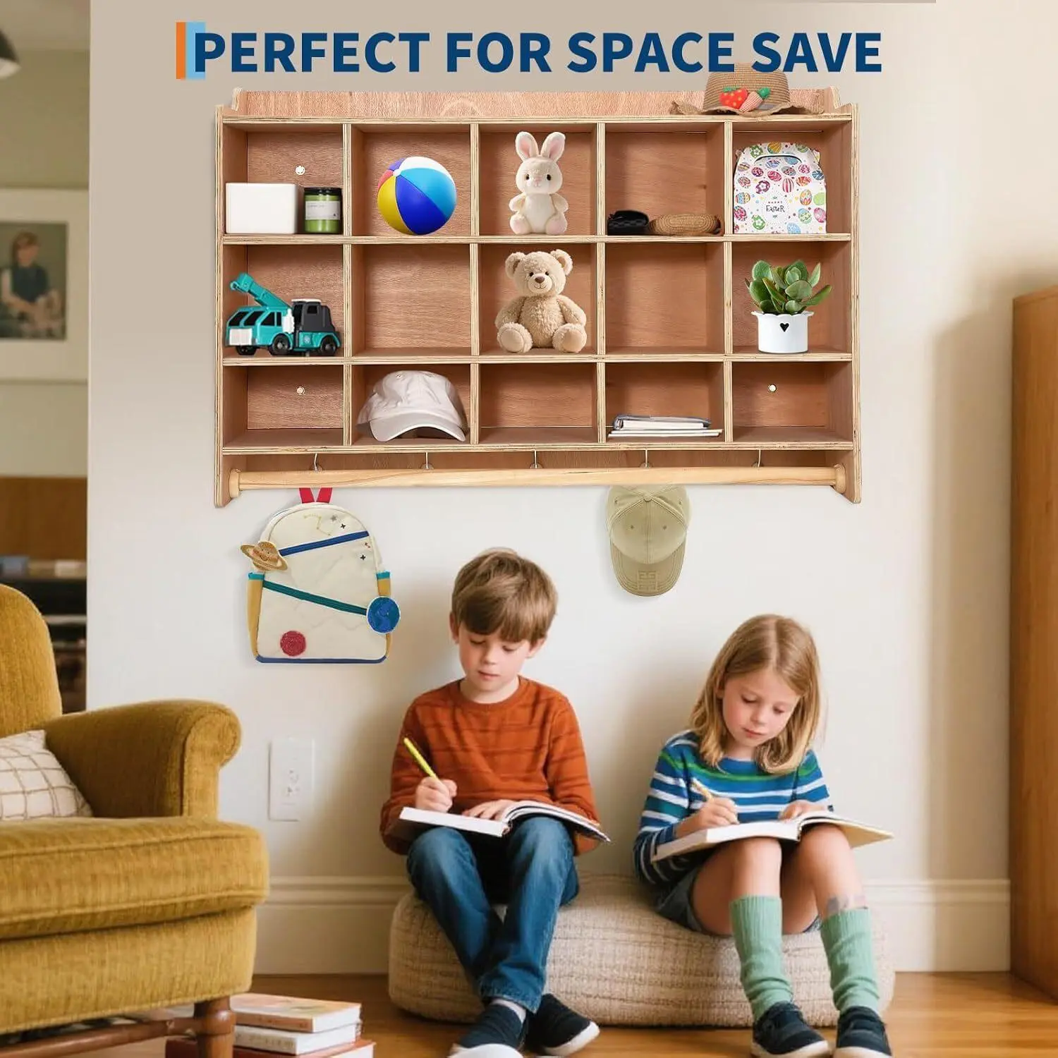 Space Saving Wall Mount Design Designed to maximize floor space this double stacked cubby shelf accommodates up to 10 children while occupying minimal wall area Ideal for busy environments