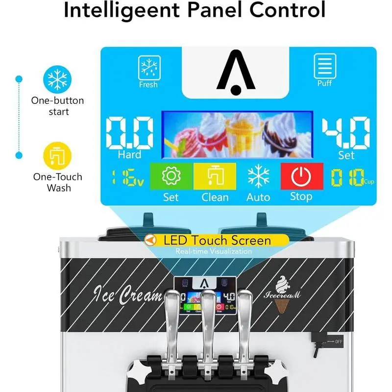 Intuitive Operation & Cleaning Equipped with a smart LED panel, this machine allows for easy monitoring and control of ice cream consistency, hardness, and temperature. Additionally, the one-button cleaning function simplifies maintenance, making it effortless to keep the machine in peak condition.