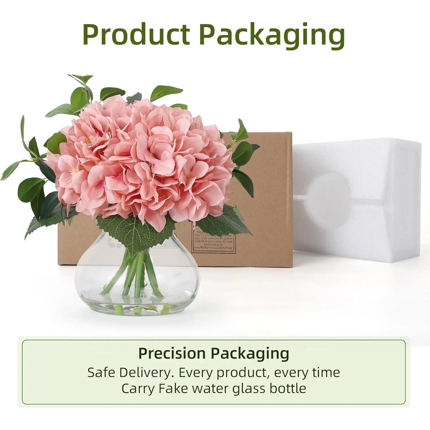 Romantic Life Partner: This set of 7 artificial hydrangea flowers with glass vase boasts rich colors and delicate silk petals crafted to mimic natural blooms, bringing romantic elegance and a fresh, luxurious touch to your home décor