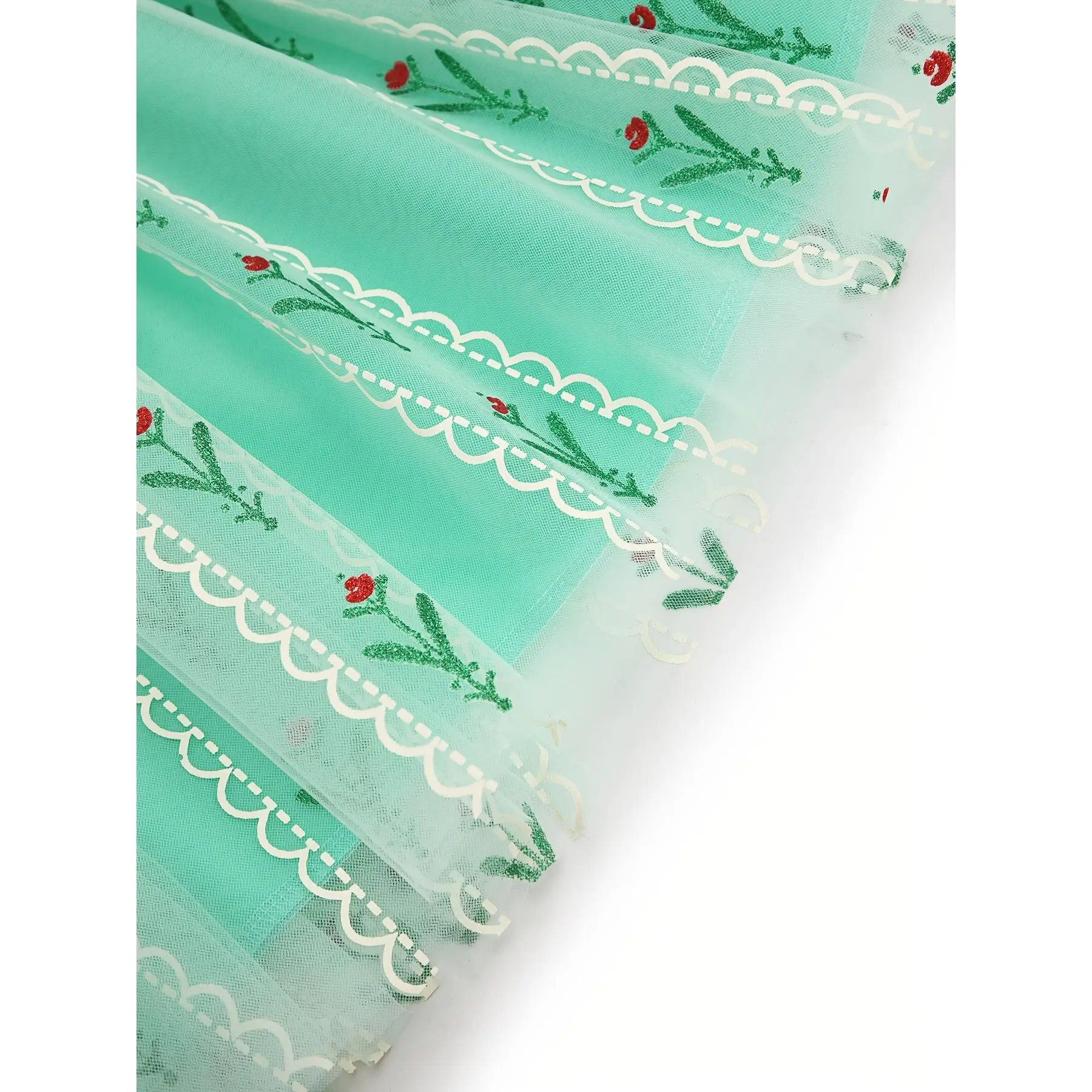 Princess Dress 7 Accessories Girl's Fairytale Outfit with Bubble Sleeves & Mesh Splicing Print Skirt Set for Halloween Christmas Carnival Party TM1483912