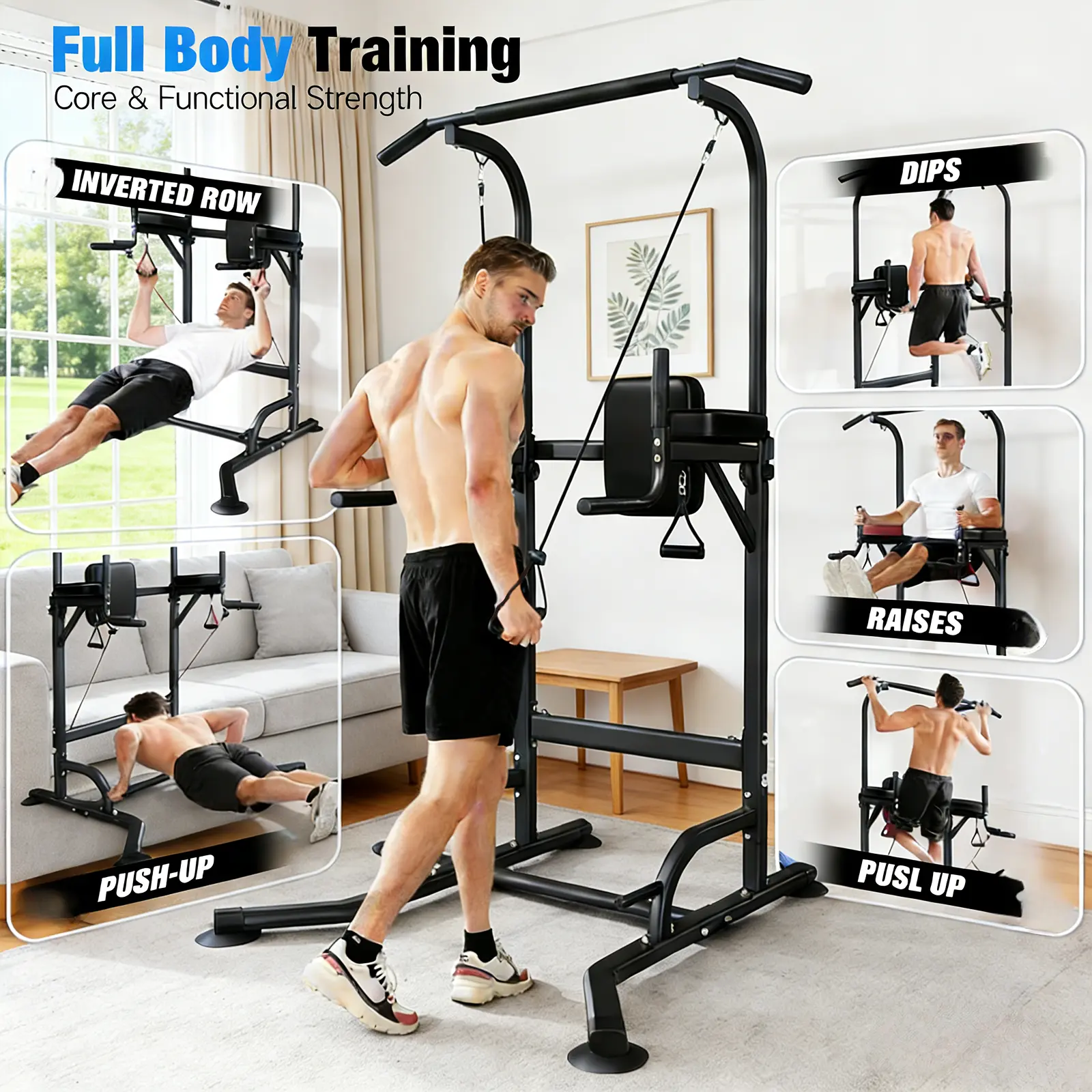 Elevate your exercise regimen with this versatile power tower. It's a compact solution for home gyms, providing a comprehensive workout experience. With its adjustable height, you can customize the intensity of your exercises. Perfect for anyone looking to improve their strength and fitness levels from the comfort of their home.