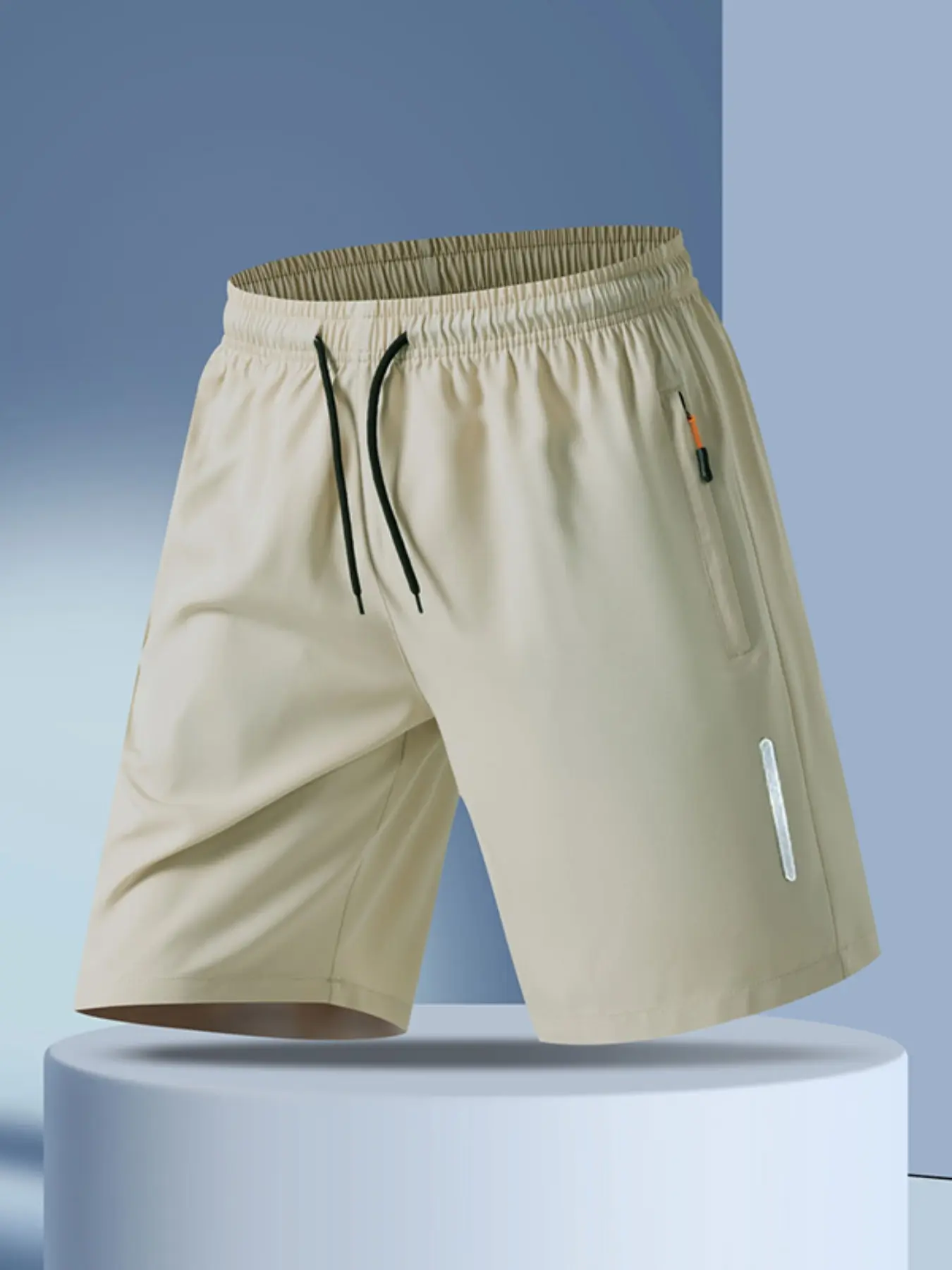 5-piece Men's Solid Drawstring Pocket Shorts, Casual Loose-Fitting Beach Vacation Wear, Breathable Summer Sports Pants, Daily Wear