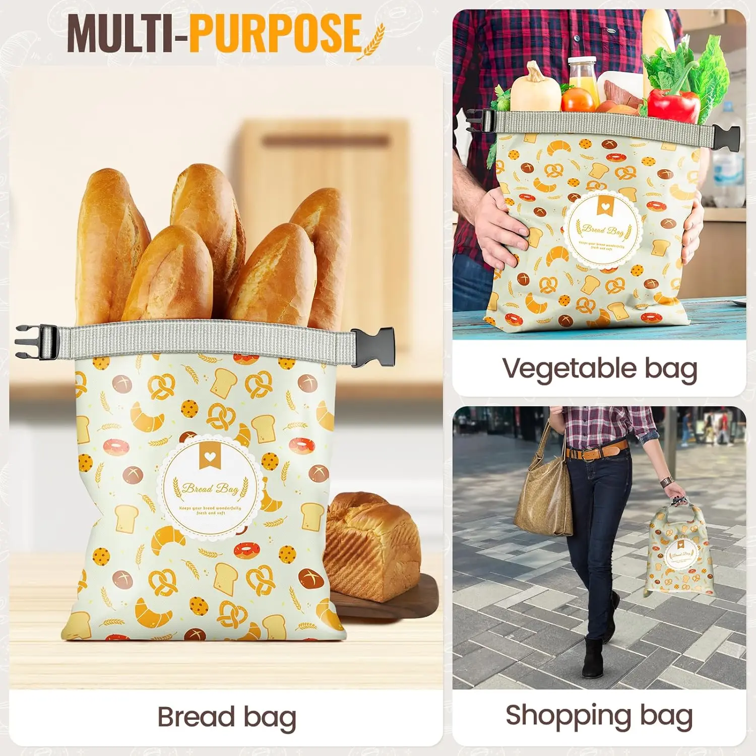 ·[Easy to Clean]The bread storage bags are durable and machine washable. Sublimation printing will not fall off even if machine washed. Isolation lining for easy removal of crumbs. Our high-quality bread storage bags ensure excellent hygiene, no need for frequent washing, keep the baked goods fresh for next time.