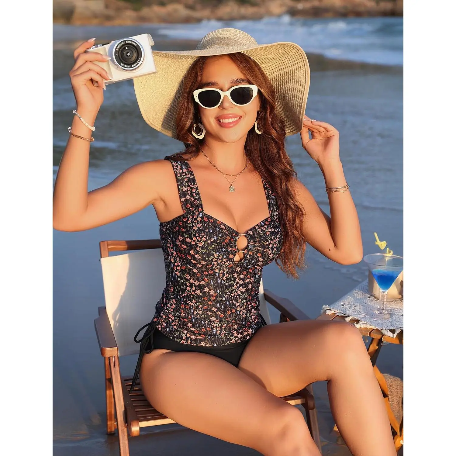 Womens Two Piece Tankini Swimsuits Tummy Control Bathing Suit Sexy O Ring Cutout Swim Suits 2026