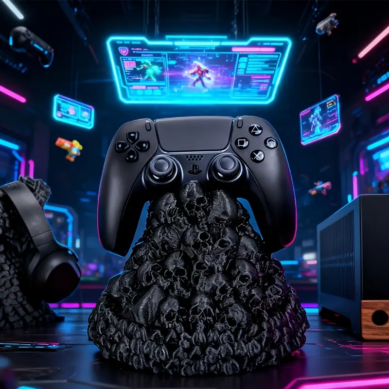 The stand is a practical and decorative accessory. It keeps your controller visible and organized. The skull design is both functional and aesthetic. It's a great addition to any gaming enthusiast's collection.