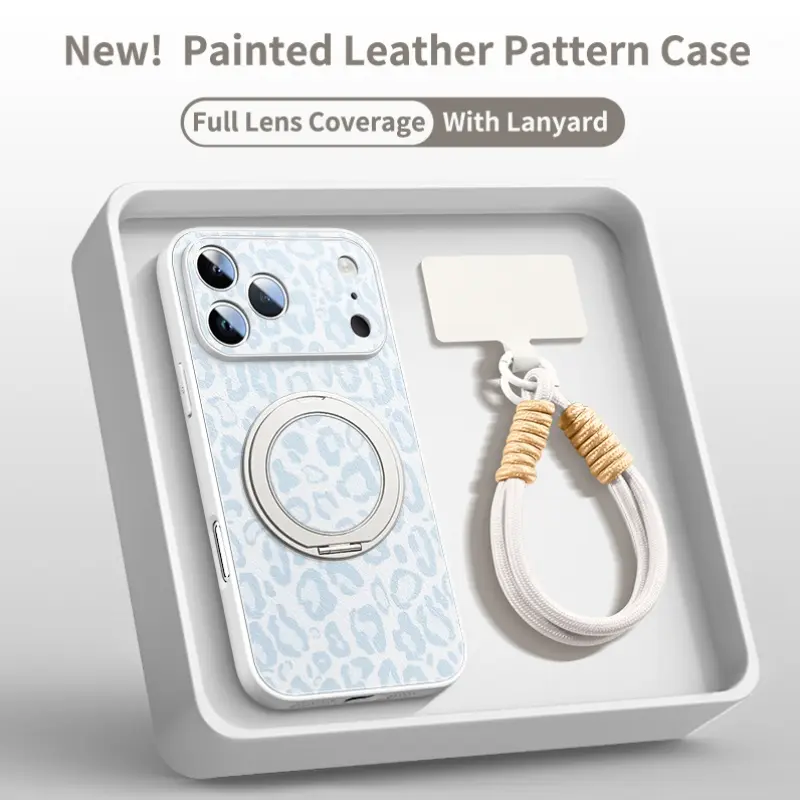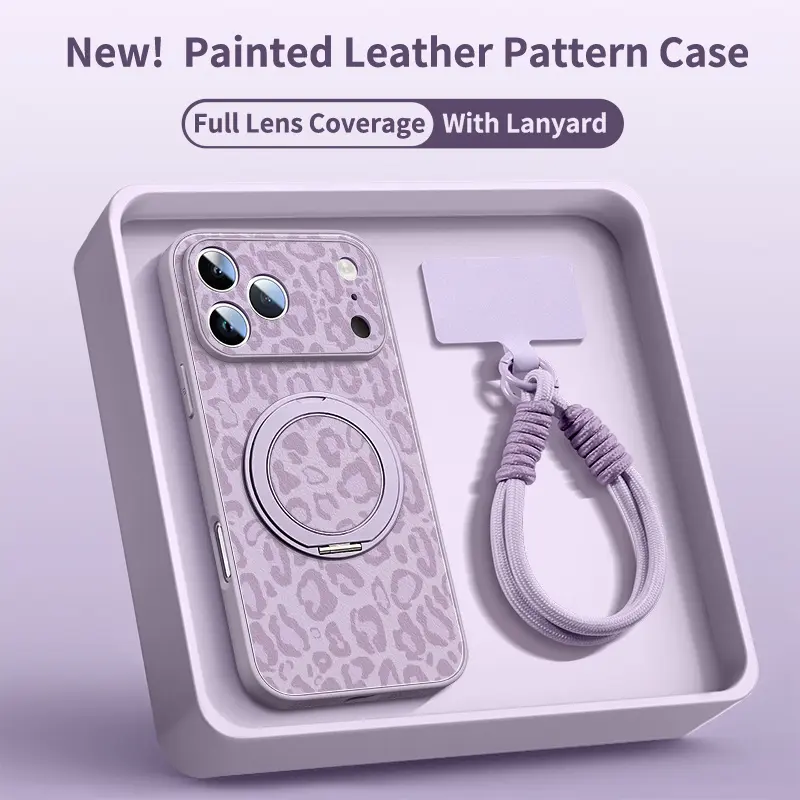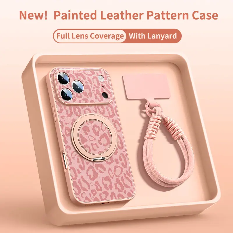 Phone Case - Leopard Pattern Phone Case for Iphone 17 Pro Max Faux Leather Pattern Phone Case 13 Equipped with a Rotating Bracket for Iphone 14 15Pro with Lanyard 17 iphone 12 Custom Monogram Striped Pink wildflower junk lurvia tripod 360 rotation