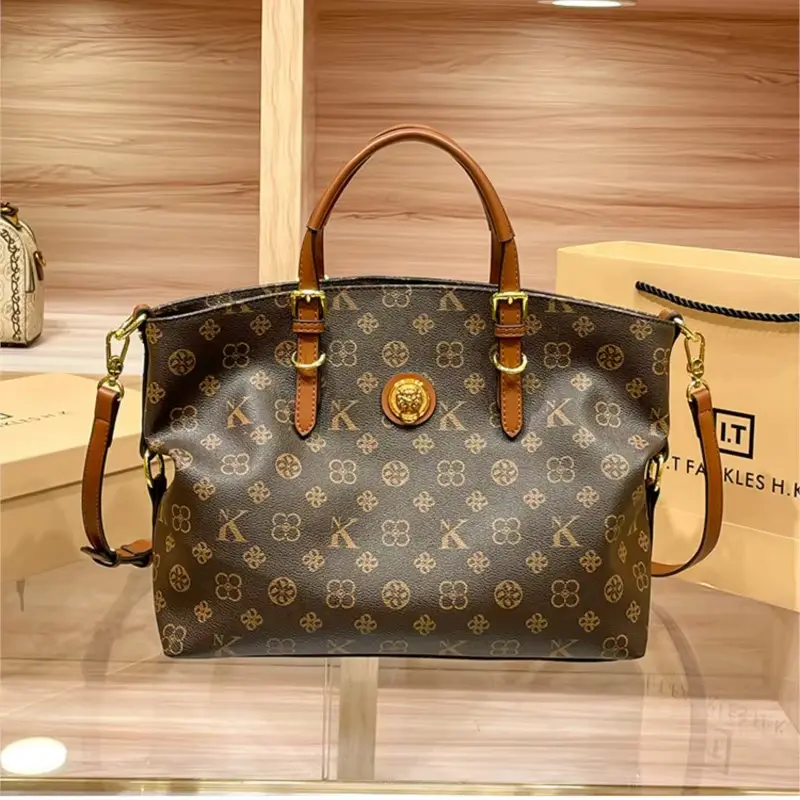 Women's Vintage Quiet Luxury Shoulder Bag Elegant Dark Brown Tote with Gold Buckle