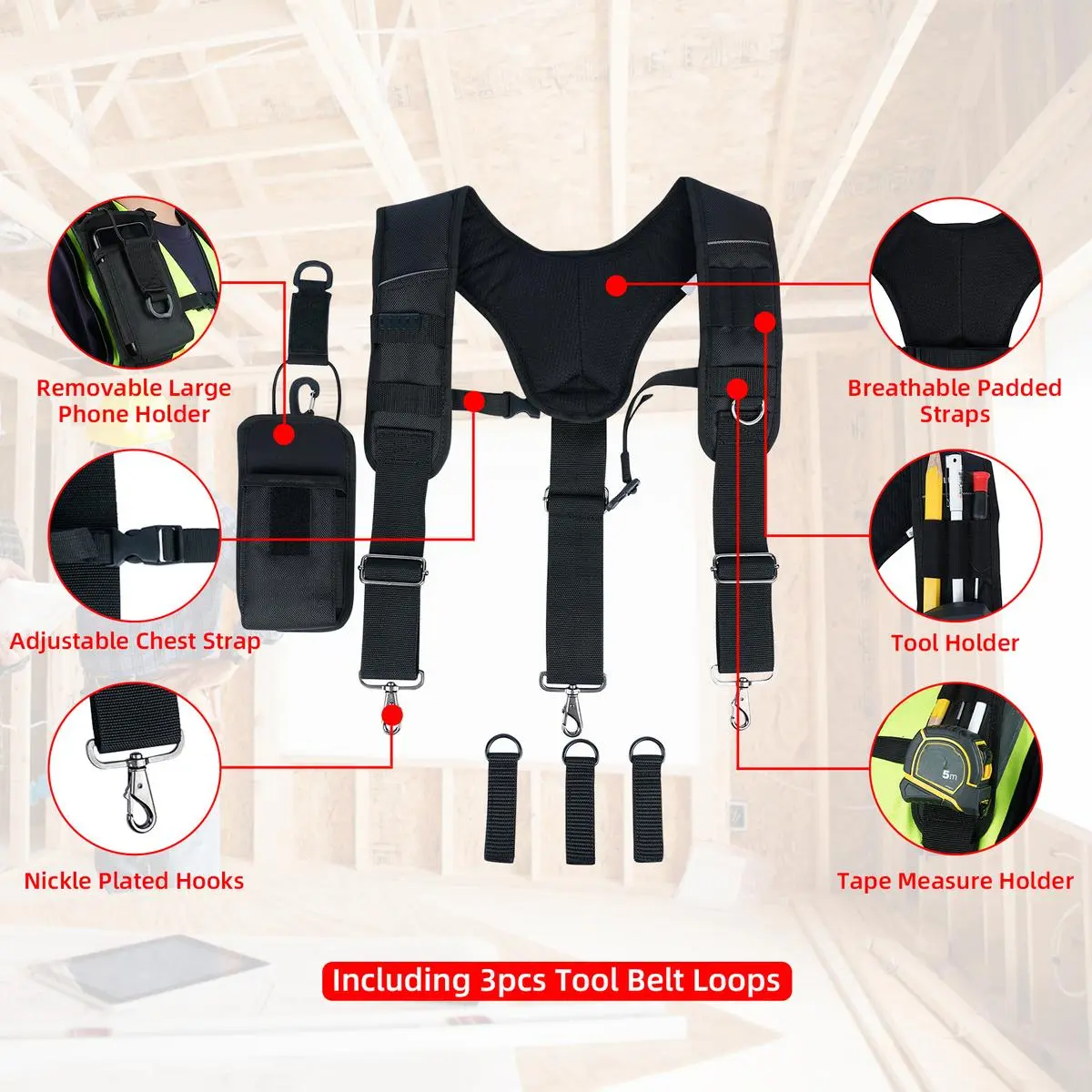 Tool Belt Suspenders Work Belt Suspenders for Men Big and Tall Construction Bag Suspenders Padded Work belt Suspenders for Carpenter/Electrician/ work(Y Back) tool belt Heavy-Duty Leather Heavy Duty suspender Heavy Duty multi-functional tool v