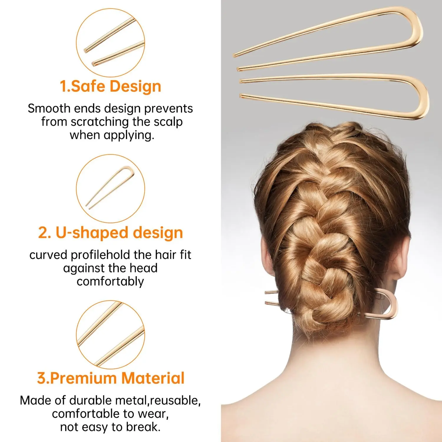 Great Hold and Comfortable: The U-shaped hair pin design and curved profile fit against the head comfortably. French hair pin holds all hair in one easy swoop all day ! Hair pin keeps hair from falling & better than clumpy clip.
