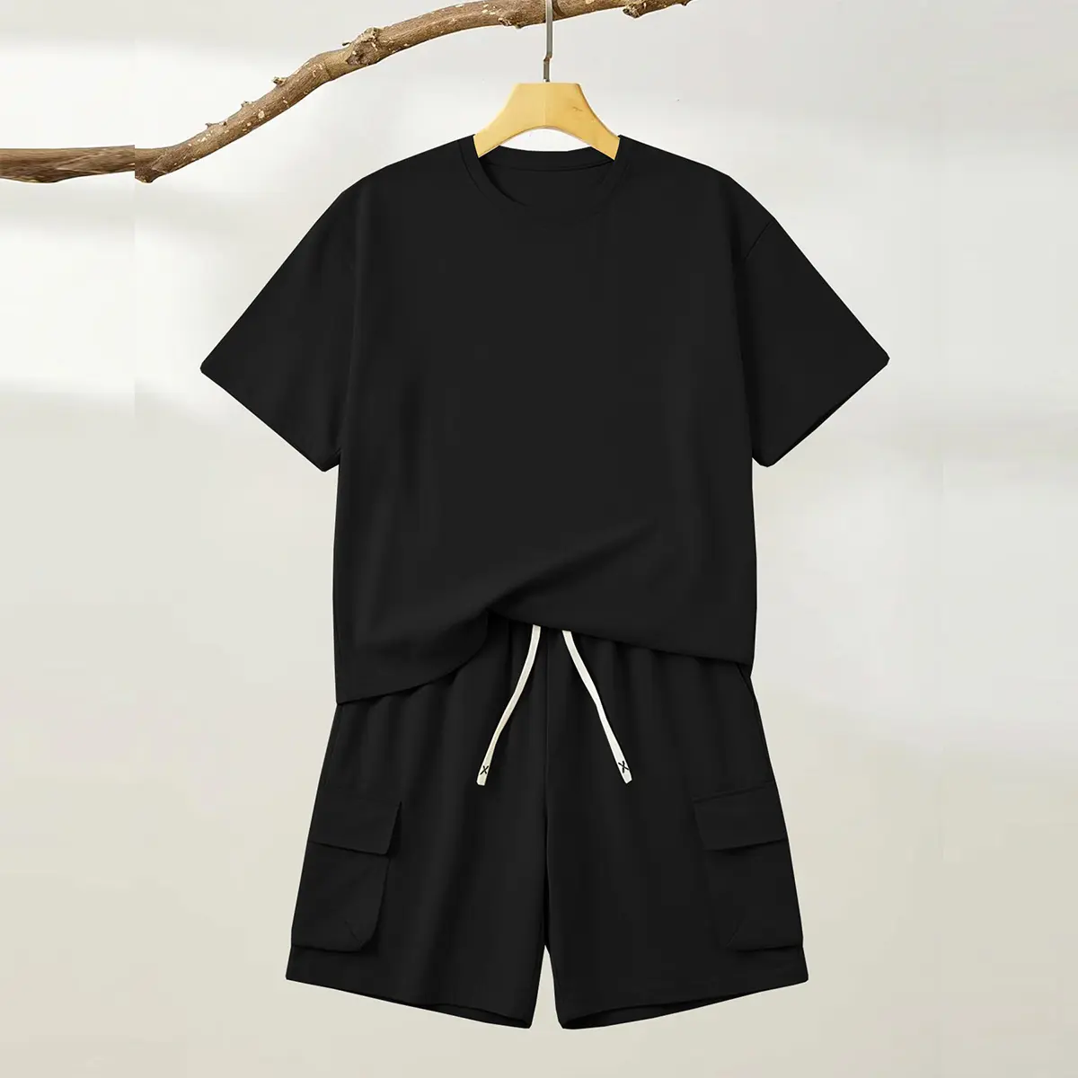 Minimalist Cargo Aesthetic Mens Timeless Athletic Shorts with Sleek Cargo Pocket Detail and Elastic Drawstring Waist for High Street Fashion and Casual Social Outings