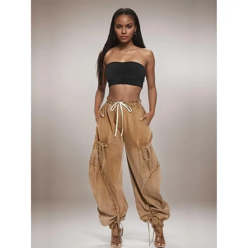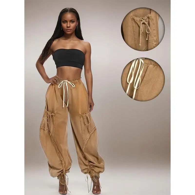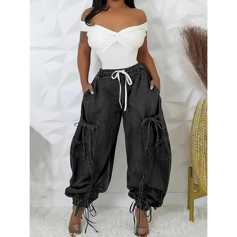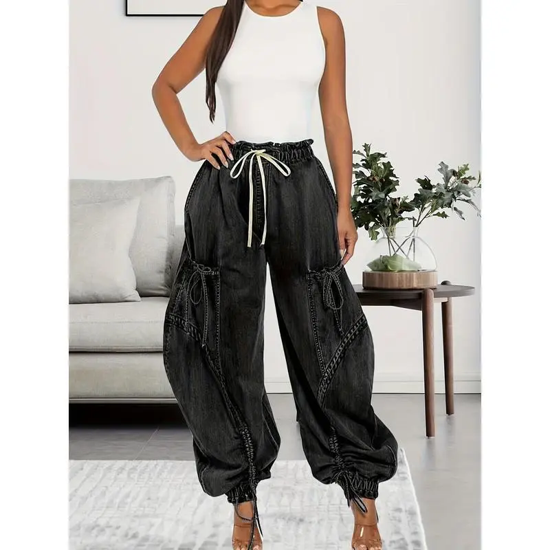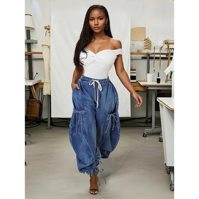 Womens Baggy Jeans Women'S Fashionable Drawstring Lace-up