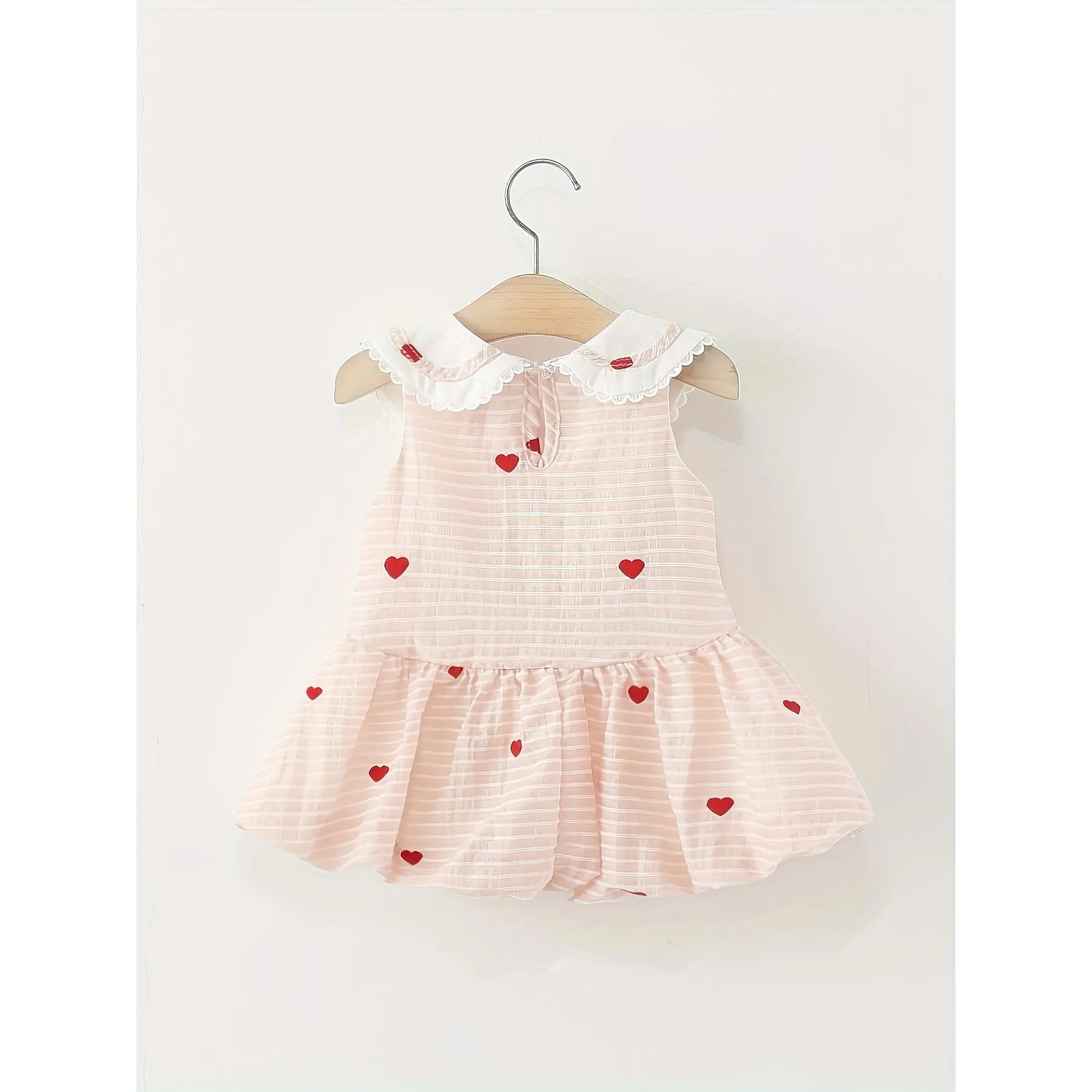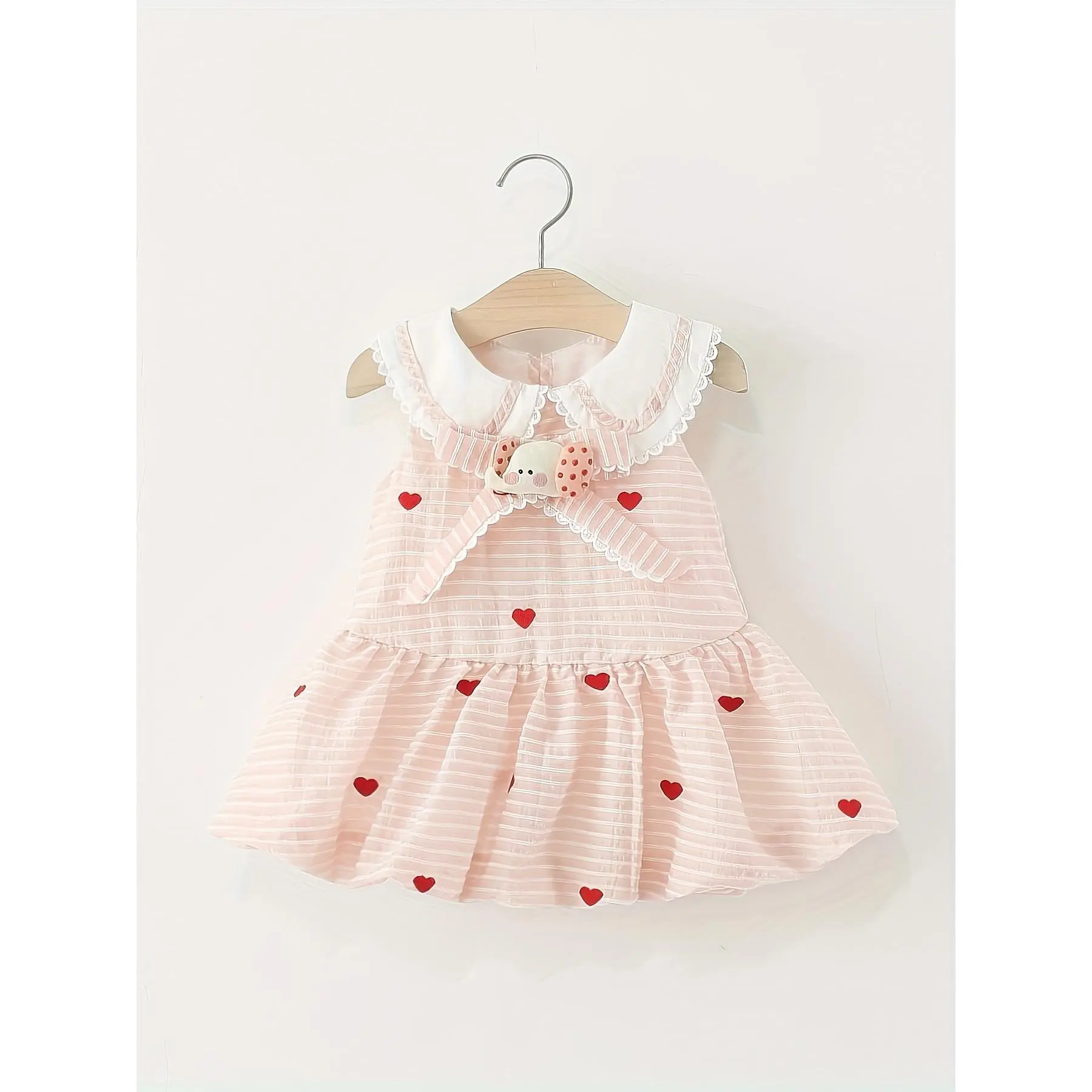 Summer Pink Striped Cute Baby Girl Dress Turn-Collar Sleeveless Sweet Heart Dress Toddler 0-4 Years Old Cartoon Elephant Casual Children's Clothing