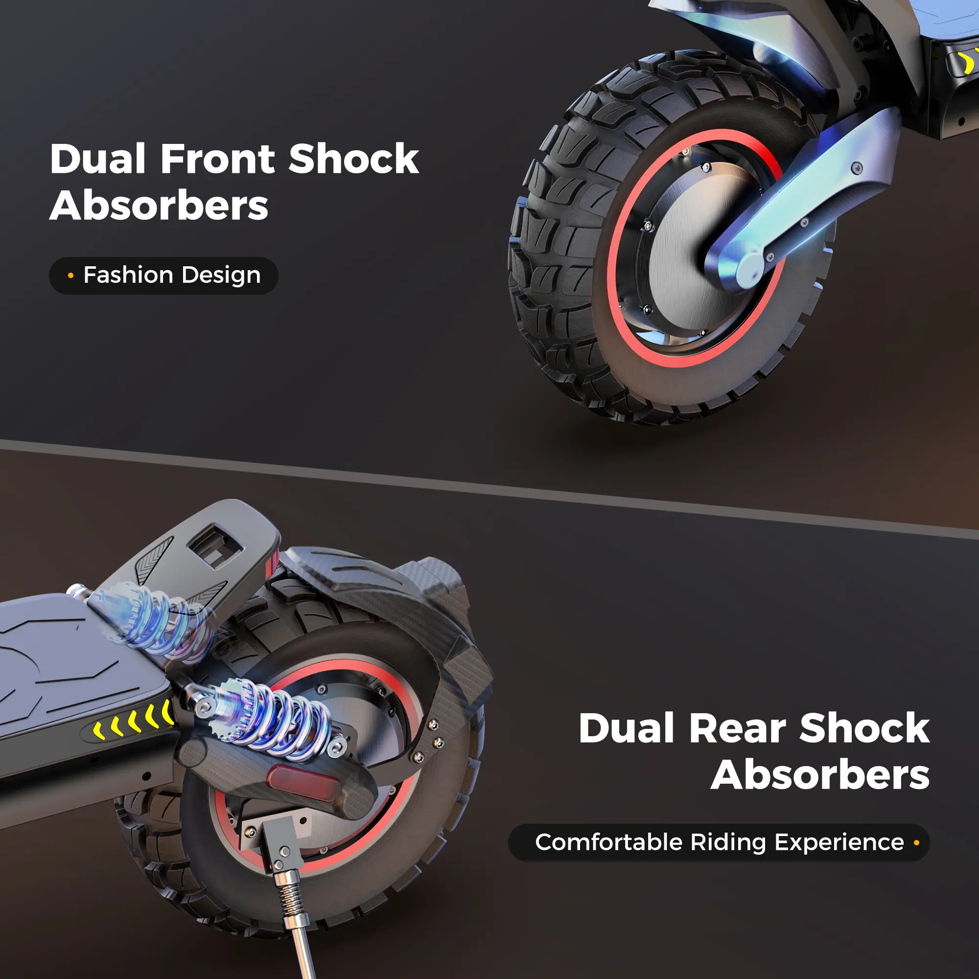 【Dual Braking System】 – Front and rear disc brakes + hidden electronic brake for smooth,