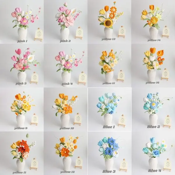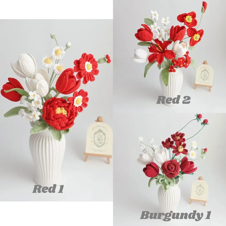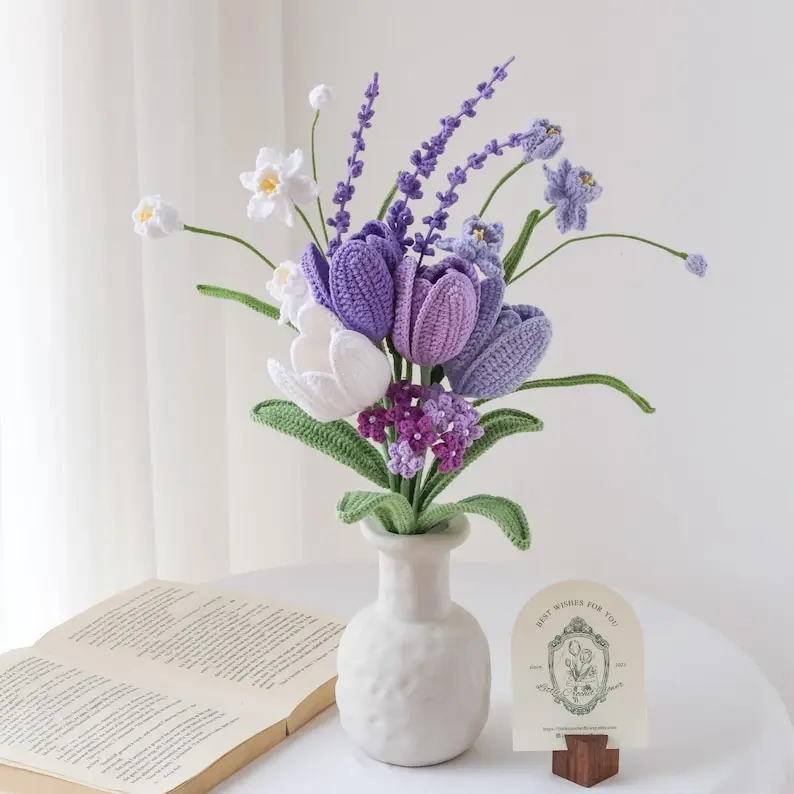 Crochet Flower Bouquet, Tulip, Lavender Knitted Flowers, Handmade Floral Gift for Mother, Graduation, Home Decor, Custom Flower Arrangement