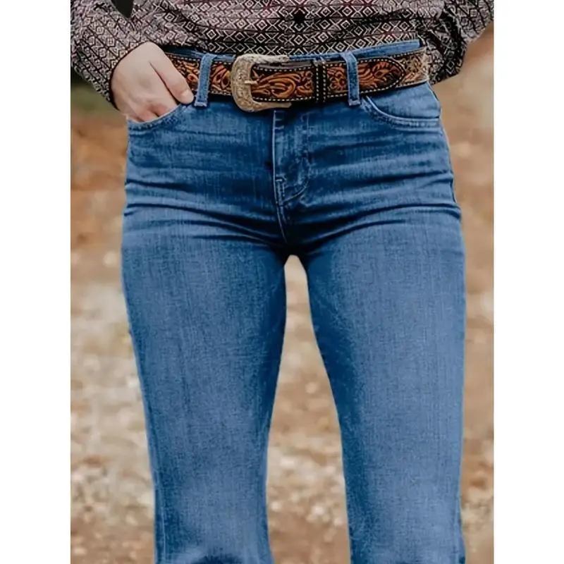 Women's High-Waisted Flare Jeans - Non-See-Through Cowboy Bootcut Pants, Machine Washable All-Season Jeans for Everyday & Formal Outfits - Western Ranch Style Jeans for Women
