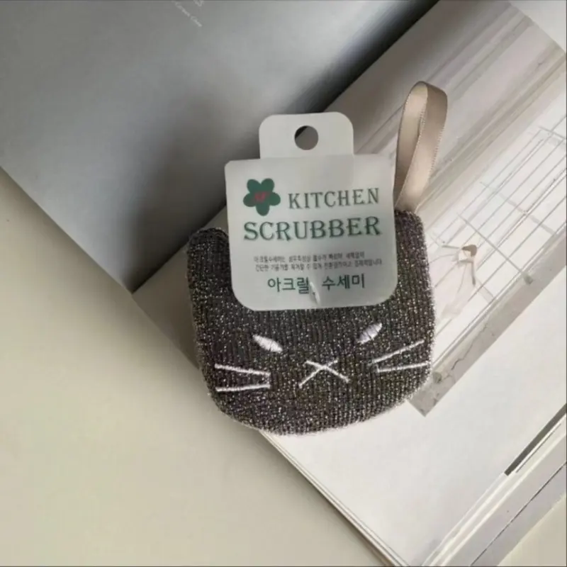 Thick Kitchen Sponge Cleaner Cloth, Cartoon Cat Embroidered Dishwashing Sponge, Non-Scratch Cleaning Pad, Durable and Reusable