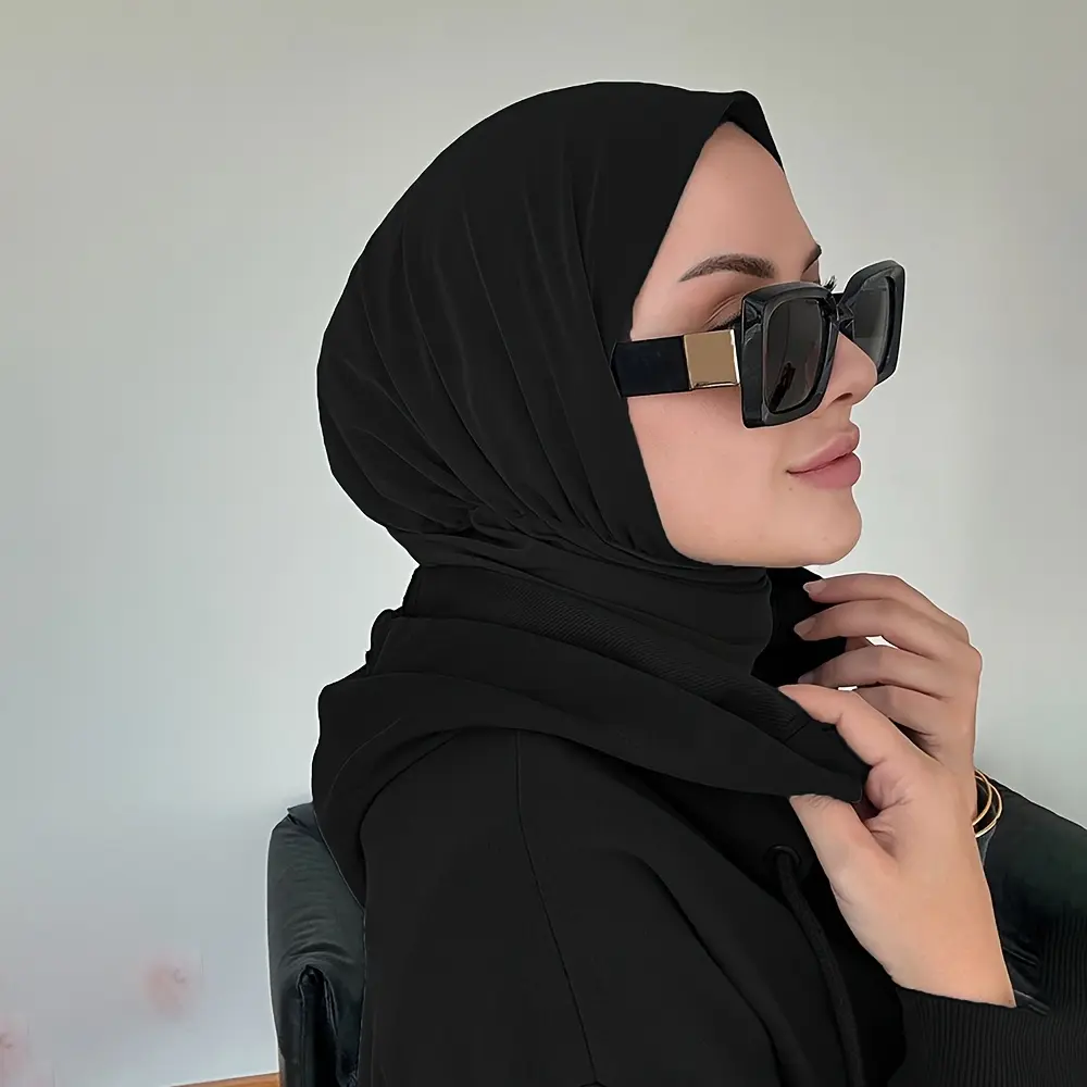 1pc Instant Hijab, Women's Convenient Stretchy Daily Solid Color Button-Fastened Muslim Headscarf Hijab Scarf