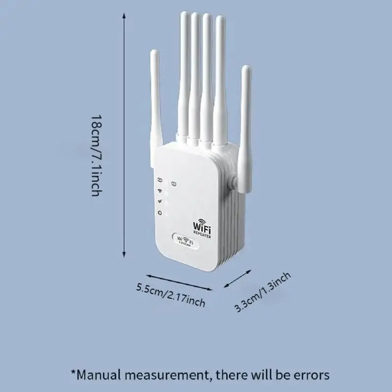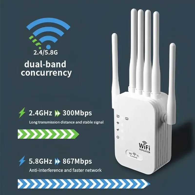 WiFi Extender 6 Antennas, 1200mbps Dual Band, Covers 12,000 Sq Ft, 100 Devices, Gigabit Port, Ai Connection, Ideal for Home Office, Remote Work, VR Area