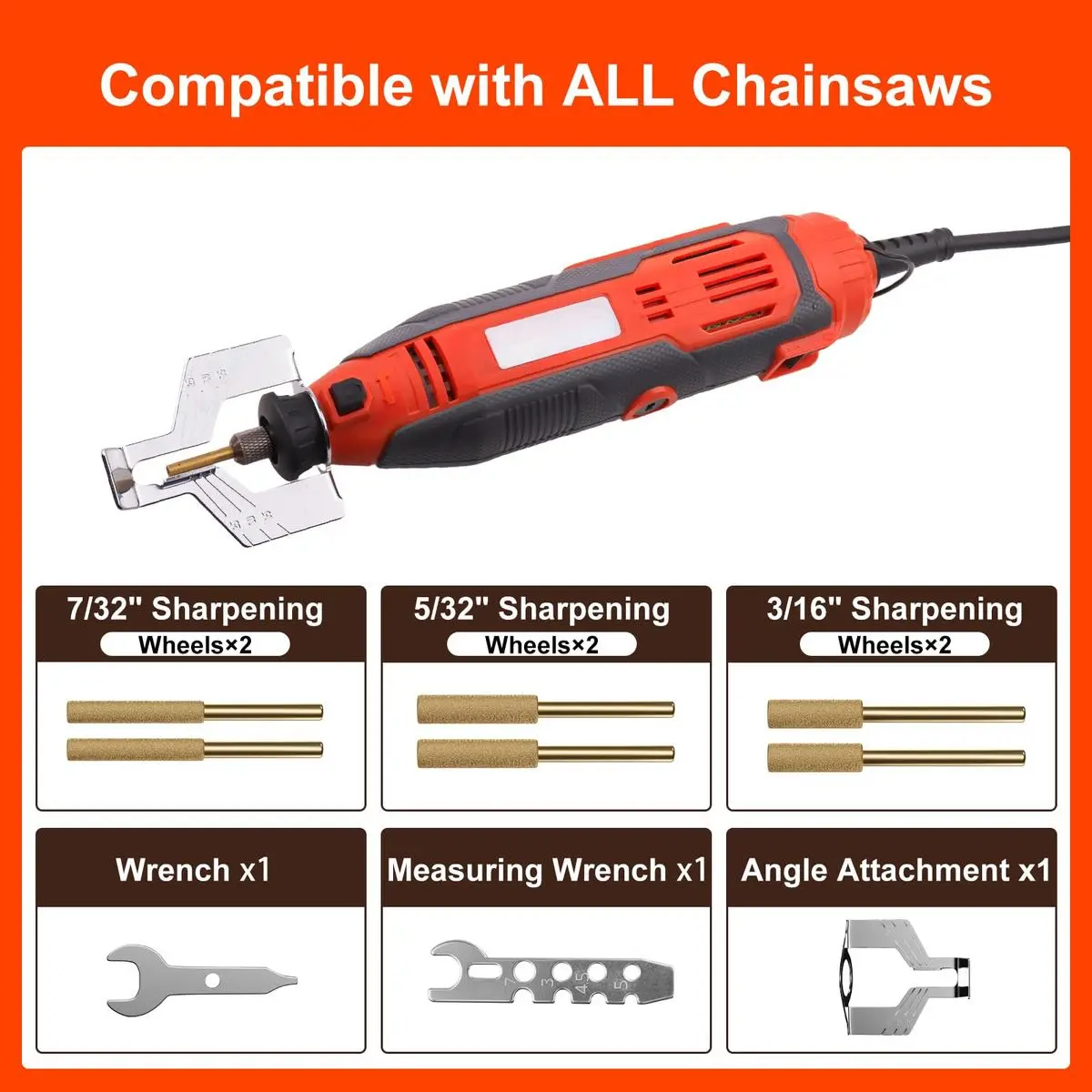 Electric Chainsaw Sharpener Kit, 3 in 1 Chainsaw File 180W Power Chain Saw Blade Sharpener Tool Titanium
