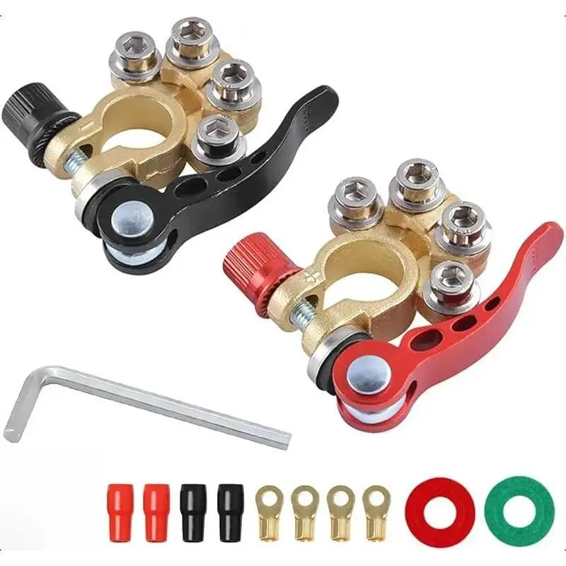 Battery Terminal Clamp Connectors, 2-Piece Set 4-Way Quick-Disconnect Connectors For Sae/Jis Type A Terminals Suitable For Cars, Trucks, And Other Vehicles