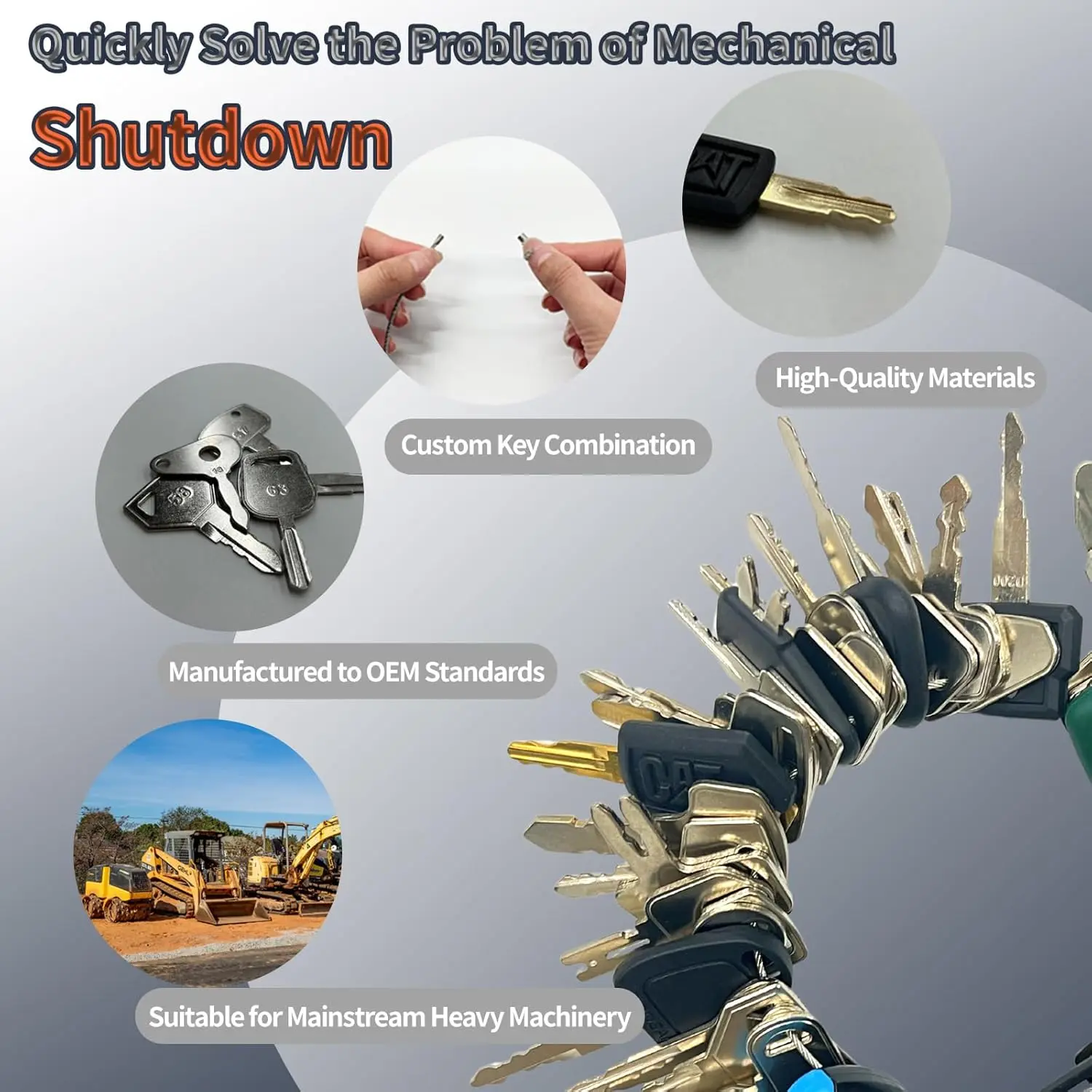 42 Heavy Equipment Keys Master Set, Construction Machine Operator Ignition Key Set for Caterpillar Bobcat JD Case JLG JCB Volvo Hyster Ford New Holland Yanmar Takeuchi Kubota Komatsu Toyota Hitachi