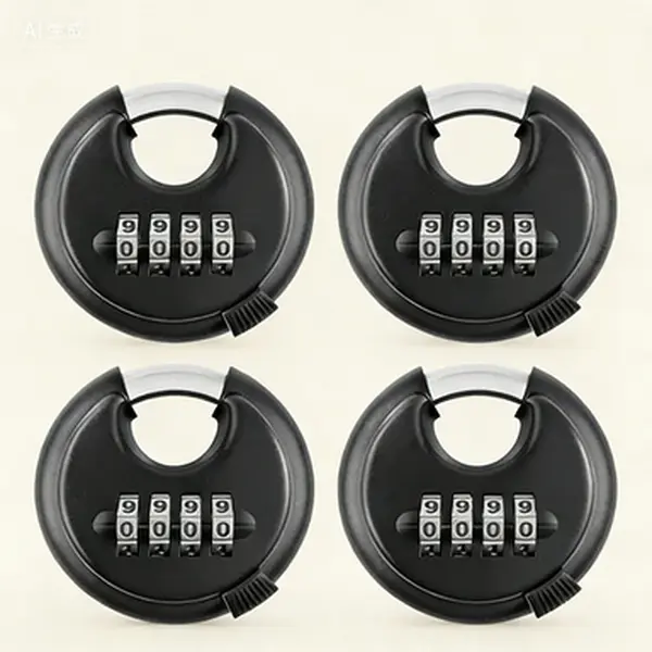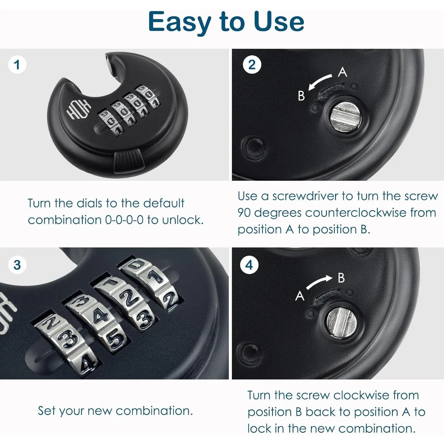 4 Digit Combination Disc Padlock with 3/8 Inch Hardened Steel Shackle, 2-3/4 Inch Wide Body Constructed from Durable Zinc Alloy, Keyless Heavy Duty Security Lock for Gates, Fences, Storage Lockers, Toolboxes, Sheds, and Hasp Latches, Set of 4 Padlocks for Enhanced Security and Convenience