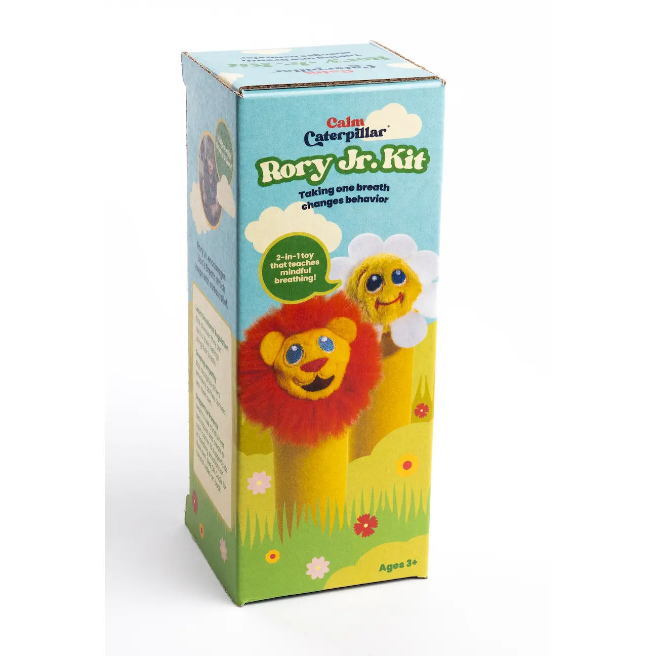 Rory Junior is a hands-on tool that helps kids practice Lion’s Breath—a powerful technique to release tension and big feelings. One side features a flower: kids breathe in slowly as if smelling it. Then they flip it over to reveal Rory the Lion and roar out a big “RAWWRRR!” to let those feelings go.