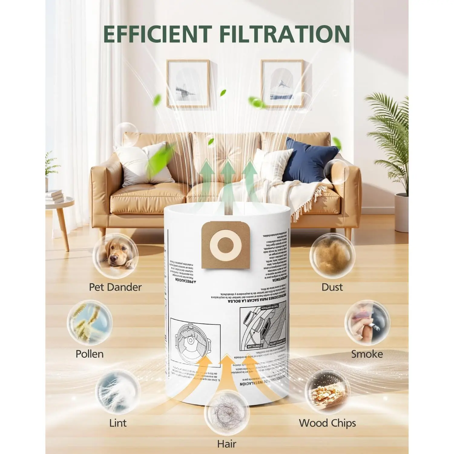 [Double Layer Filtration]Vac accessories fit for CRAFTSMAN shop vacuum are featured with Double-layer filtration.Outer paper Layer cleans up large dry debris like drywall dust, sawdust.Strong enough to handle cement dust without tearing.Inner non-woven Layer cleans up 99.97% of fine dust as small as 0.3 microns, such as pollen, smoke, pet dander