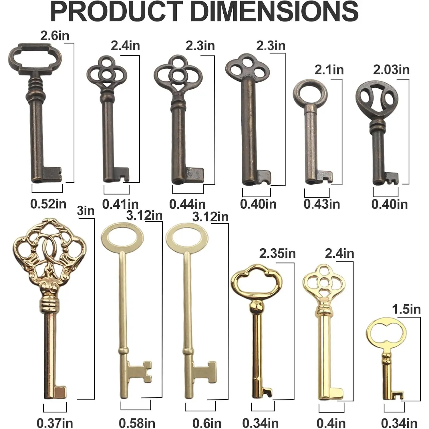 Vintage Skeleton Key Set for Antique Furniture Restoration, 12 Piece Universal Replacement Keys for Antique Dressers, Chinese Cabinets, Old Style Cabinets, Doors, Trunks, and Vintage Locks, Classic Decorative Keys for Home Decor and DIY Projects