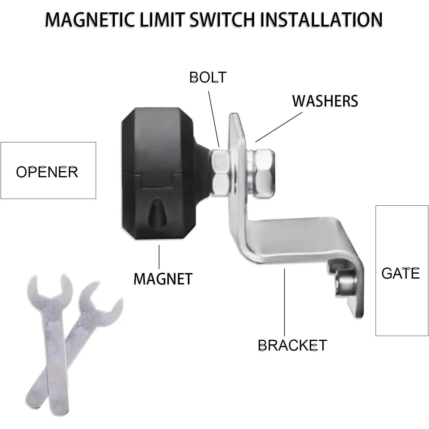 [Package Includes]The gate opener set includes 2/4 magnets, which are used to limit the moving distance.And 2 wrenches help to replace the old magnets easily.