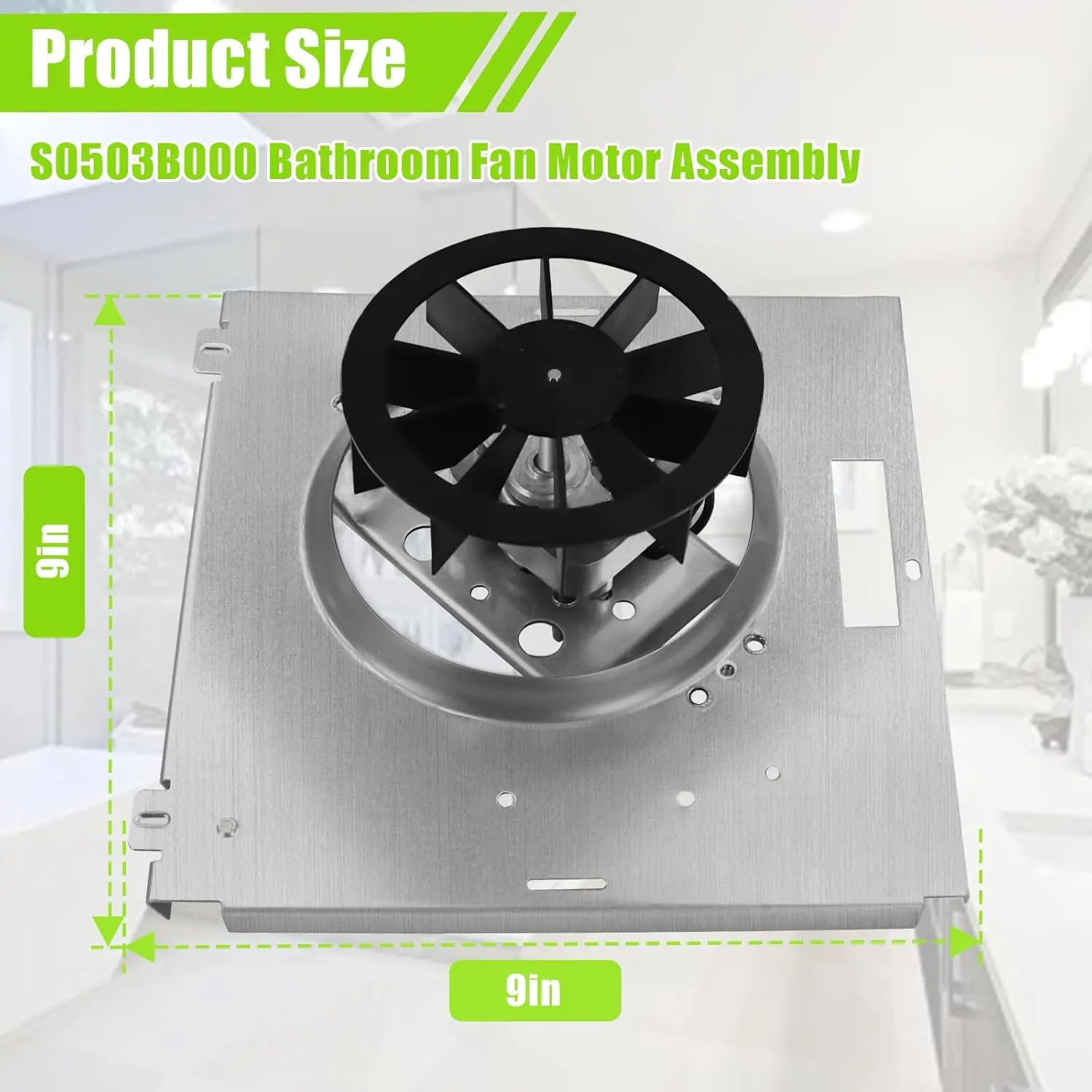 Bathroom Fan Motor Assembly for 50 CFM and 70 CFM Ventilation Units, Compatible with Various Bathroom Fan Models Including 763RLN, 763RL, 763RLNB, 763RLN-R01, 769RF, and 769RL B Unit, Features 2.0 Sone Noise Level and 9"x9" Installation Dimensions, Replacement Part for S0503B000 Series