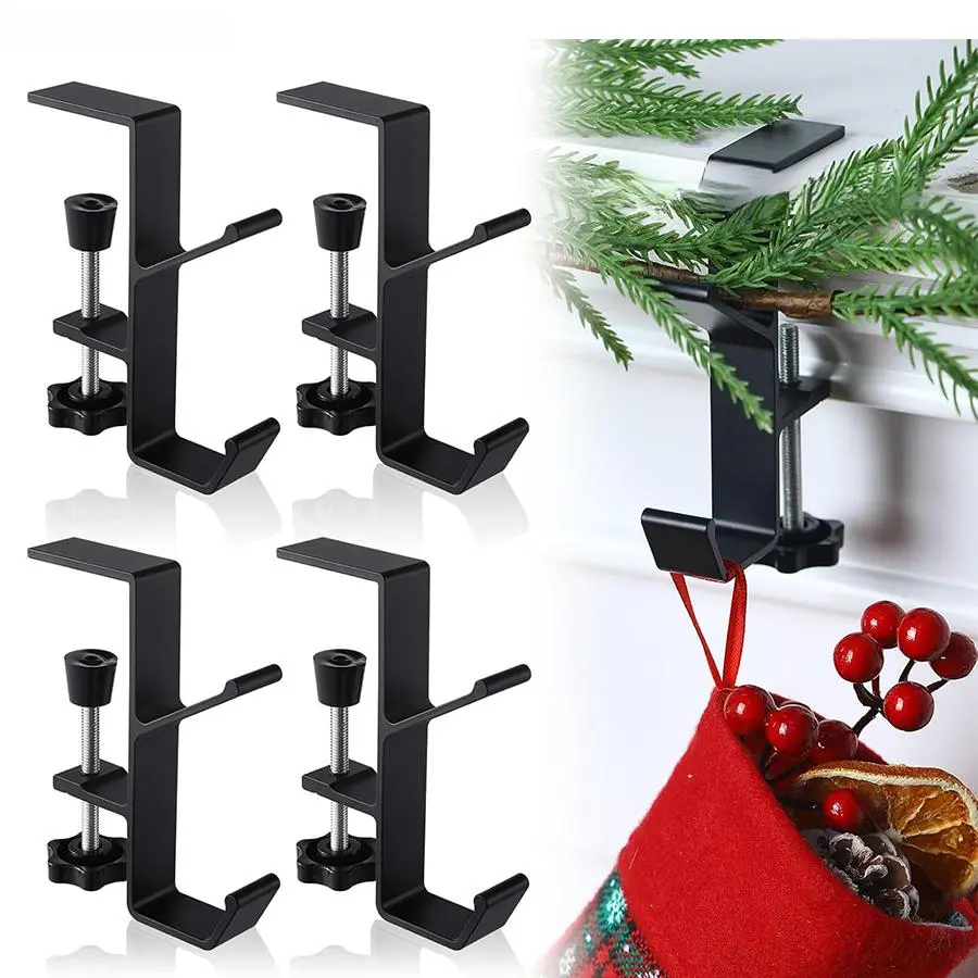 4 PCS Fireplace Stocking and Garland Hanger - Hold Christmas Stocking and Hang Garland - Christmas Stocking Garland Hanger Stocking Holders for Mantle