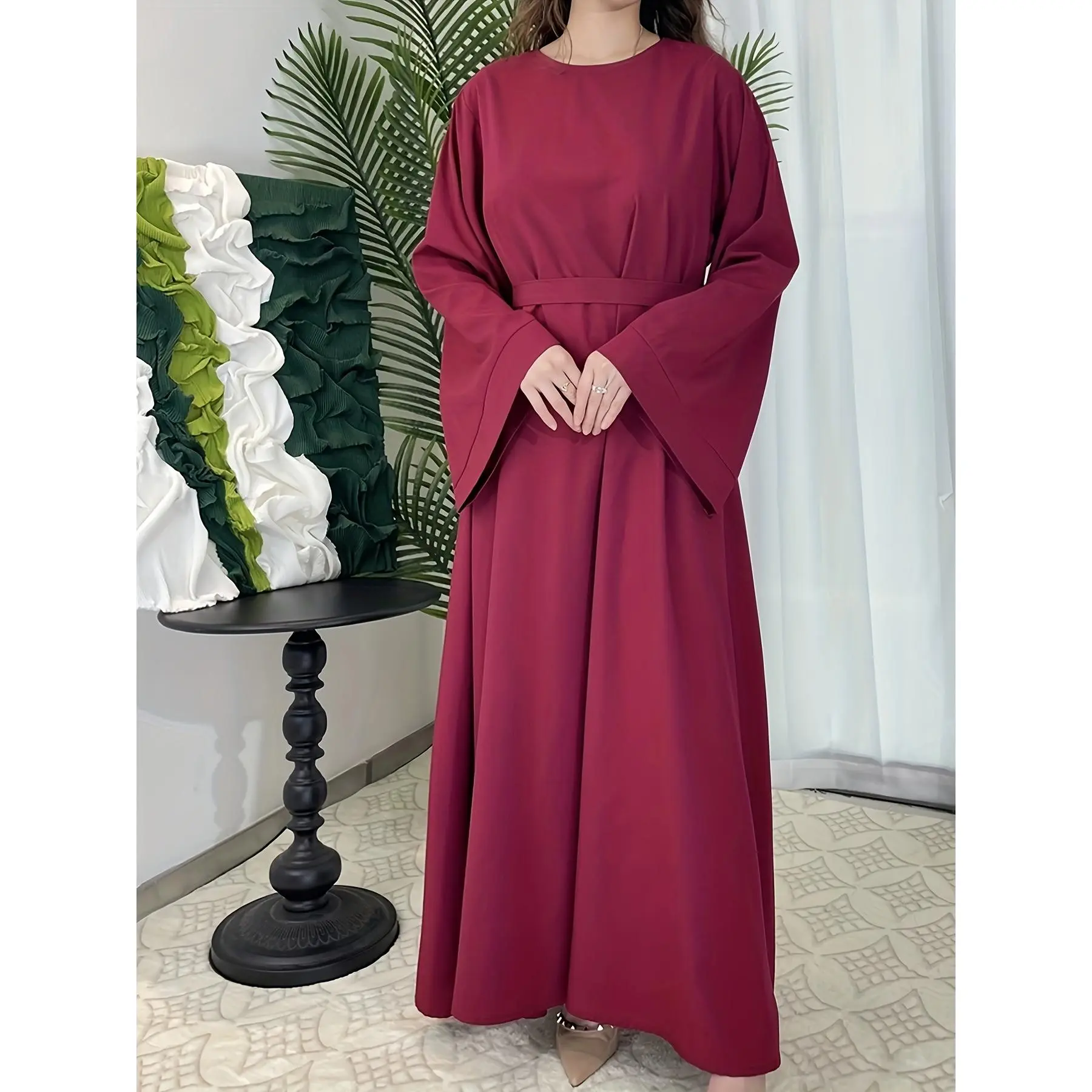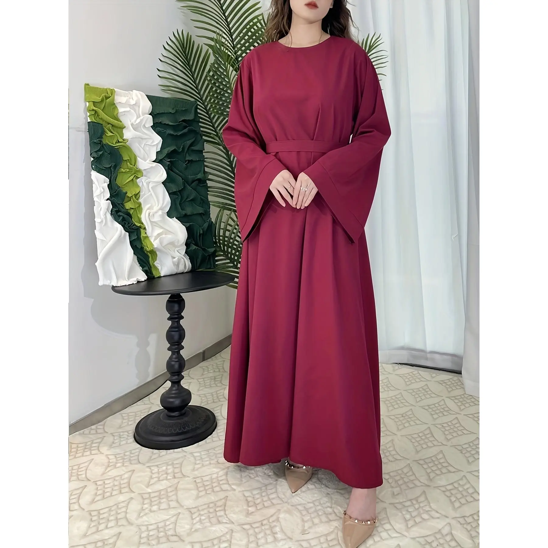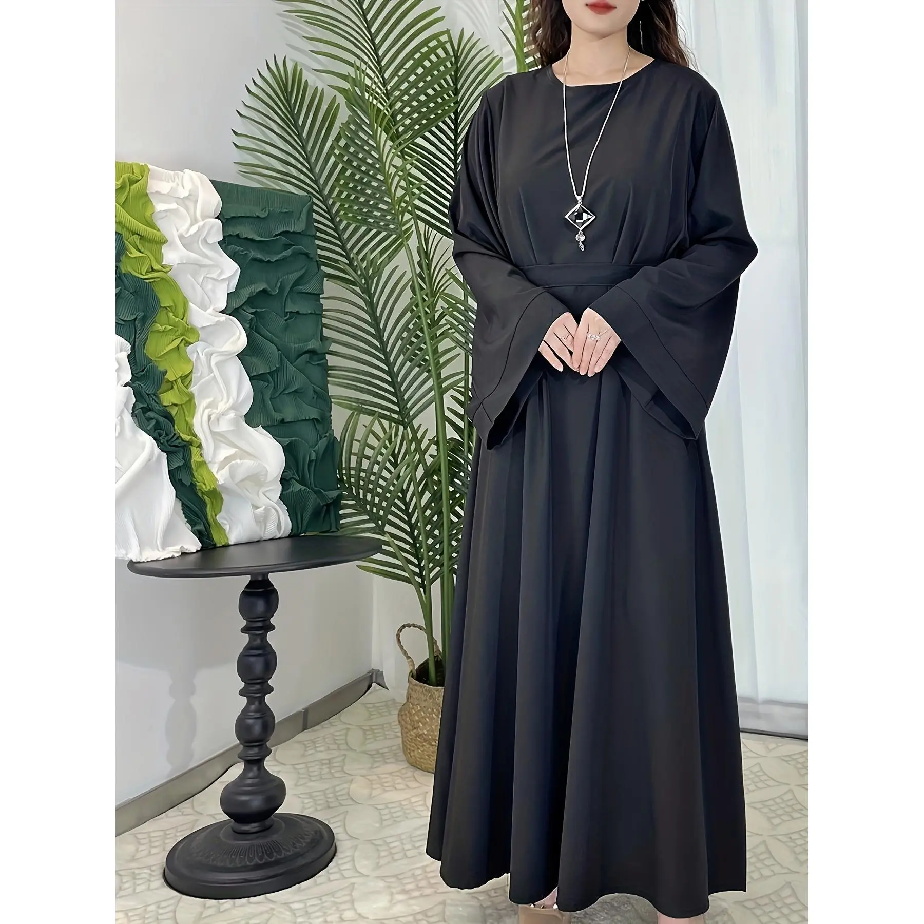 [Middle Eastern Loose Fit Dress] Elegant Green Arabic Women's Muslim Robe | Middle Eastern Flared Sleeve Long Dress | Loose Fit All-Season Versatile Home Festival Traditional Attire