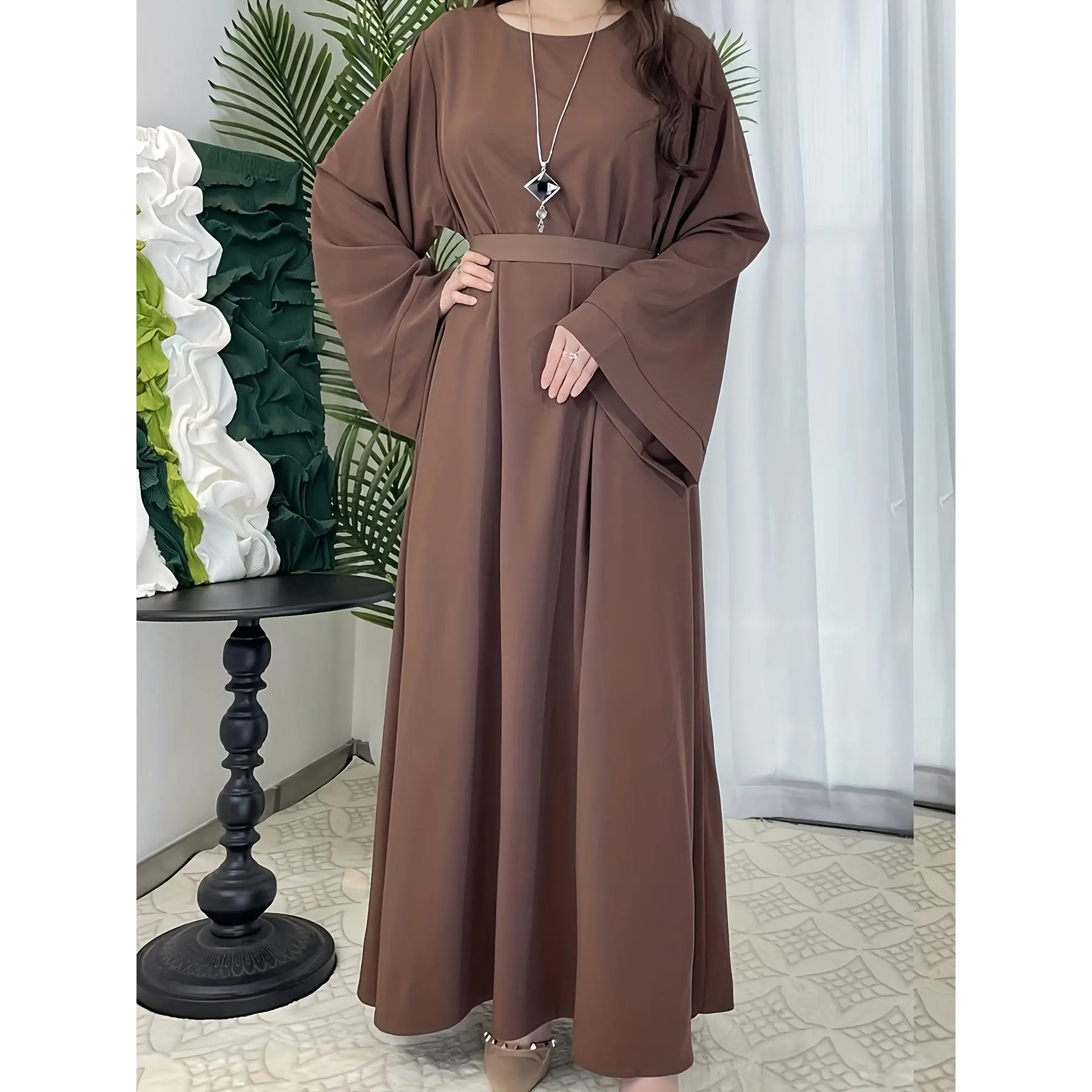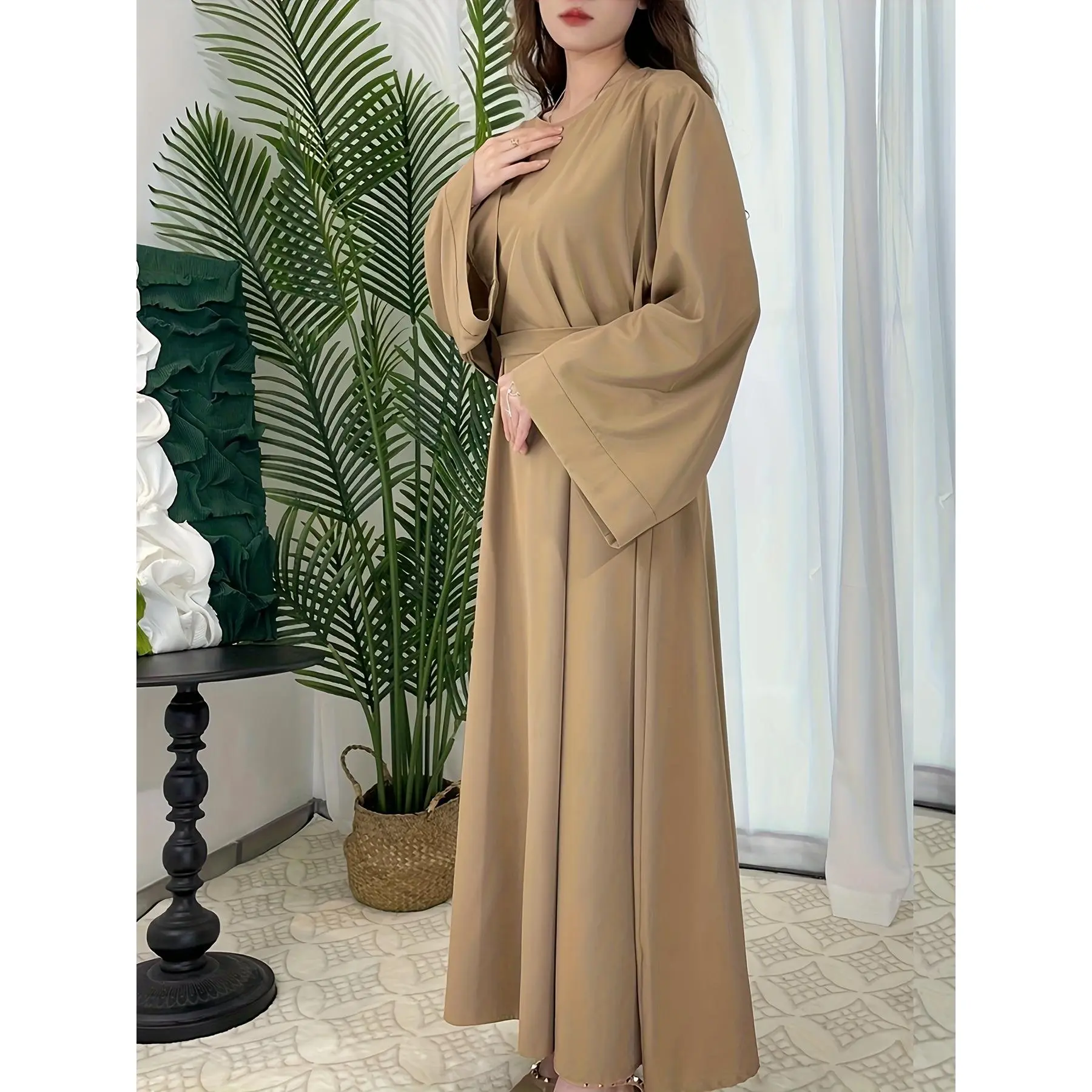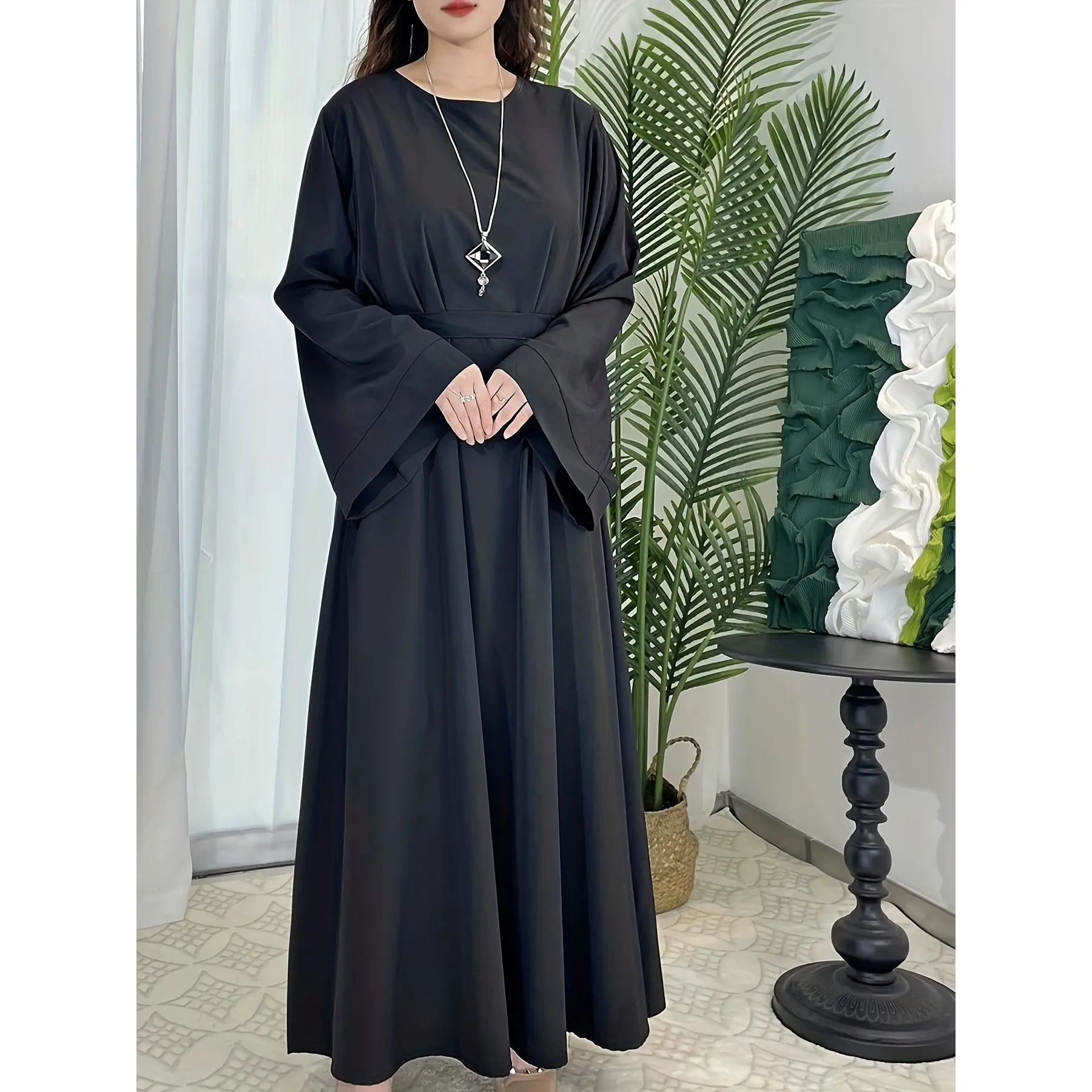 [Middle Eastern Loose Fit Dress] Elegant Green Arabic Women's Muslim Robe | Middle Eastern Flared Sleeve Long Dress | Loose Fit All-Season Versatile Home Festival Traditional Attire